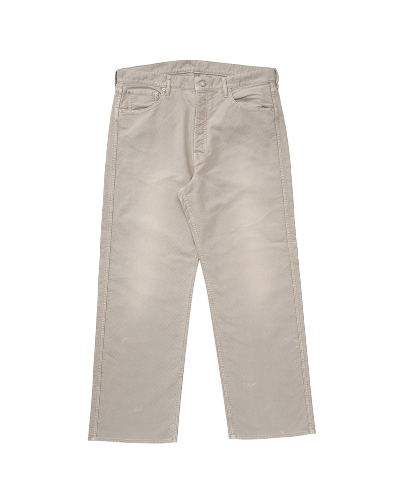 5-pocket pants made from specially processed German cord cotton. Garment-dyed distressed finish. Regular fit, straight silhouette. High-rise button fly. Original PEERLESS logo. Neova buttons and rivets. Naturally dyed deerskin patch.