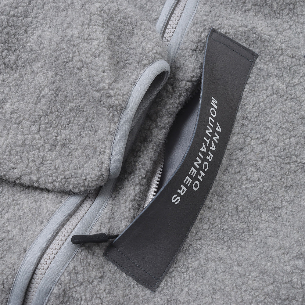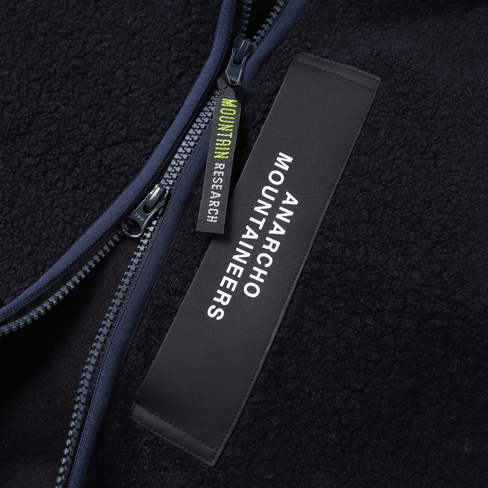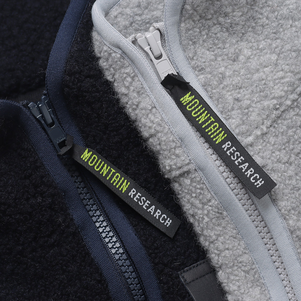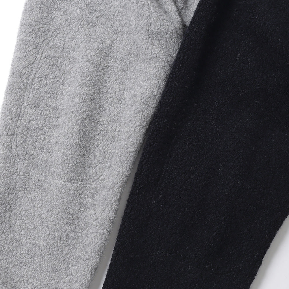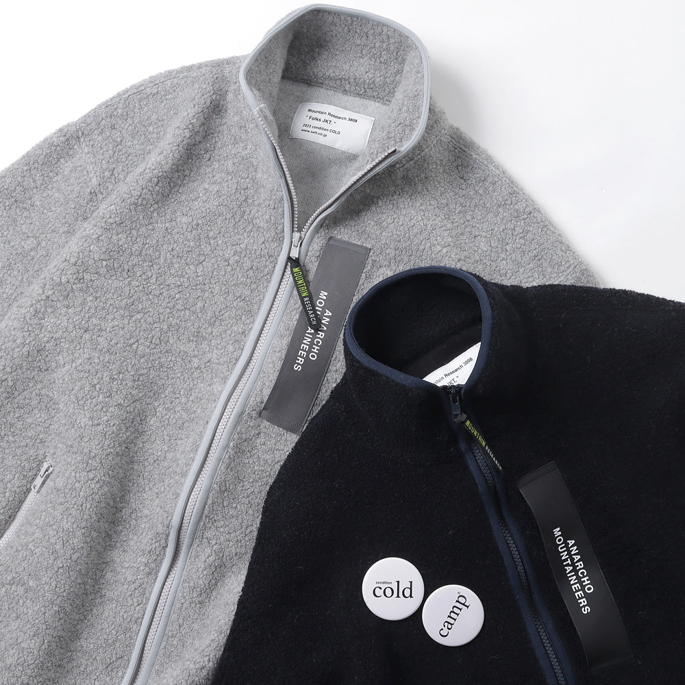 A stretch binding zip-up jacket with the loose feel of 90's fleece. The 23CC season version uses recycled wool boa. This popular design has been updated to be lighter and softer with the updated material, and the fluffy boa adds a loose feel. The spirit of using real leather on the chest pocket opening is still alive and well. A weather word badge is included.