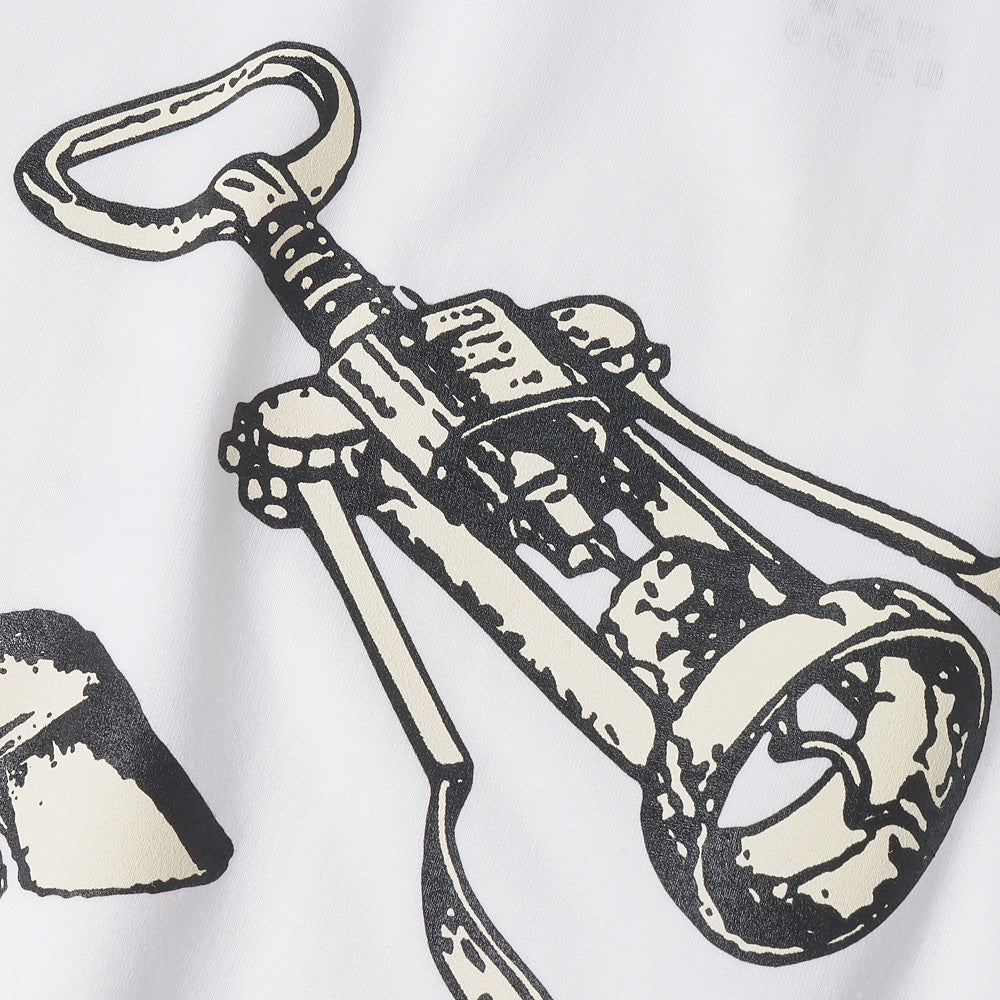 A beautifully sculpted vintage wine opener graphic adorns the back.