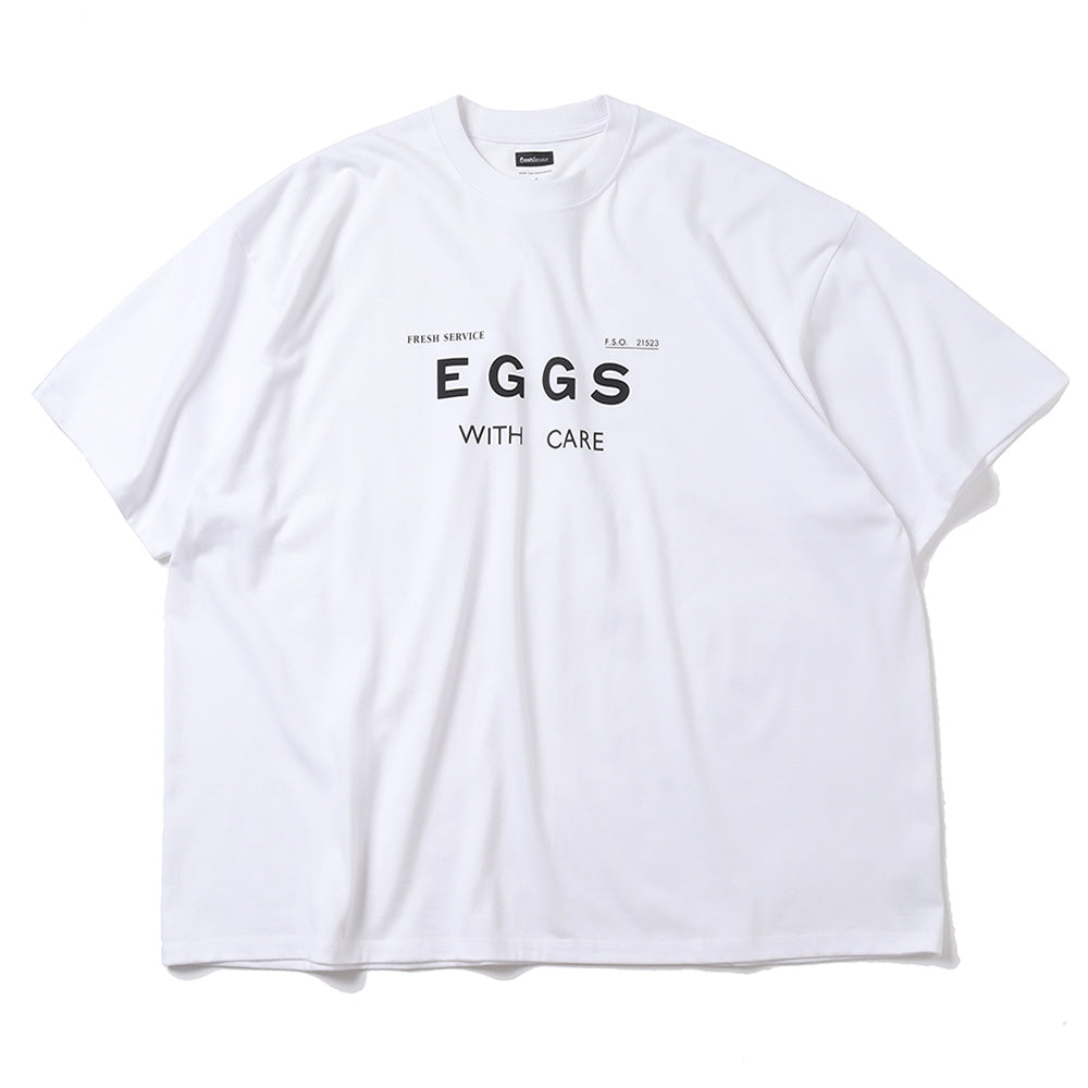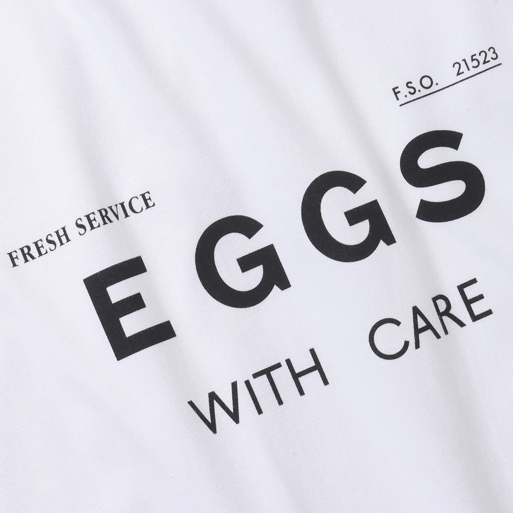 FreshService offers a variety of items to brighten up your lifestyle. The graphics are based on the grocery store's caution stickers. The body is round and made with air-spun yarn. The oversized fit is soft and fluffy to the touch.
