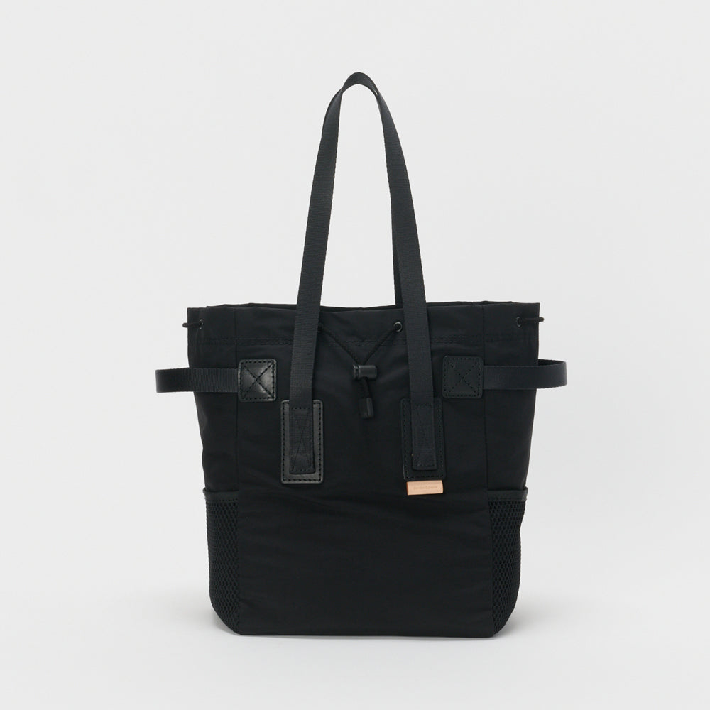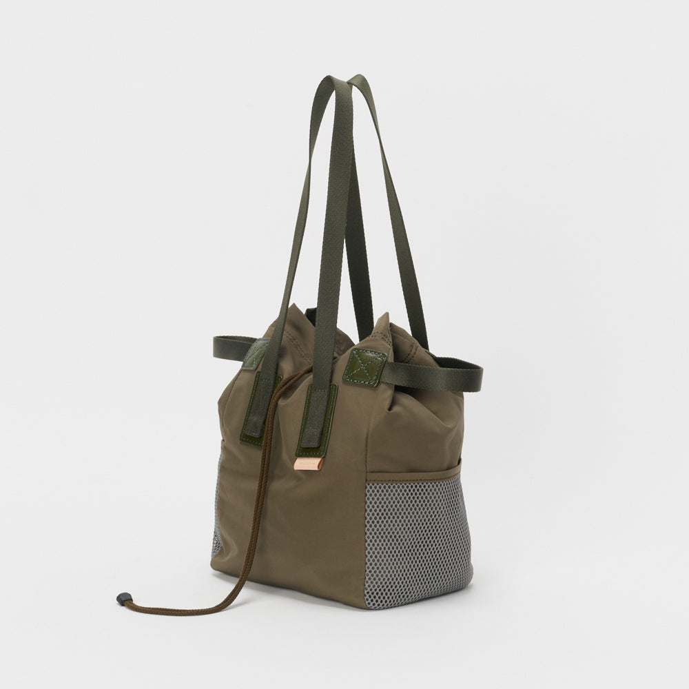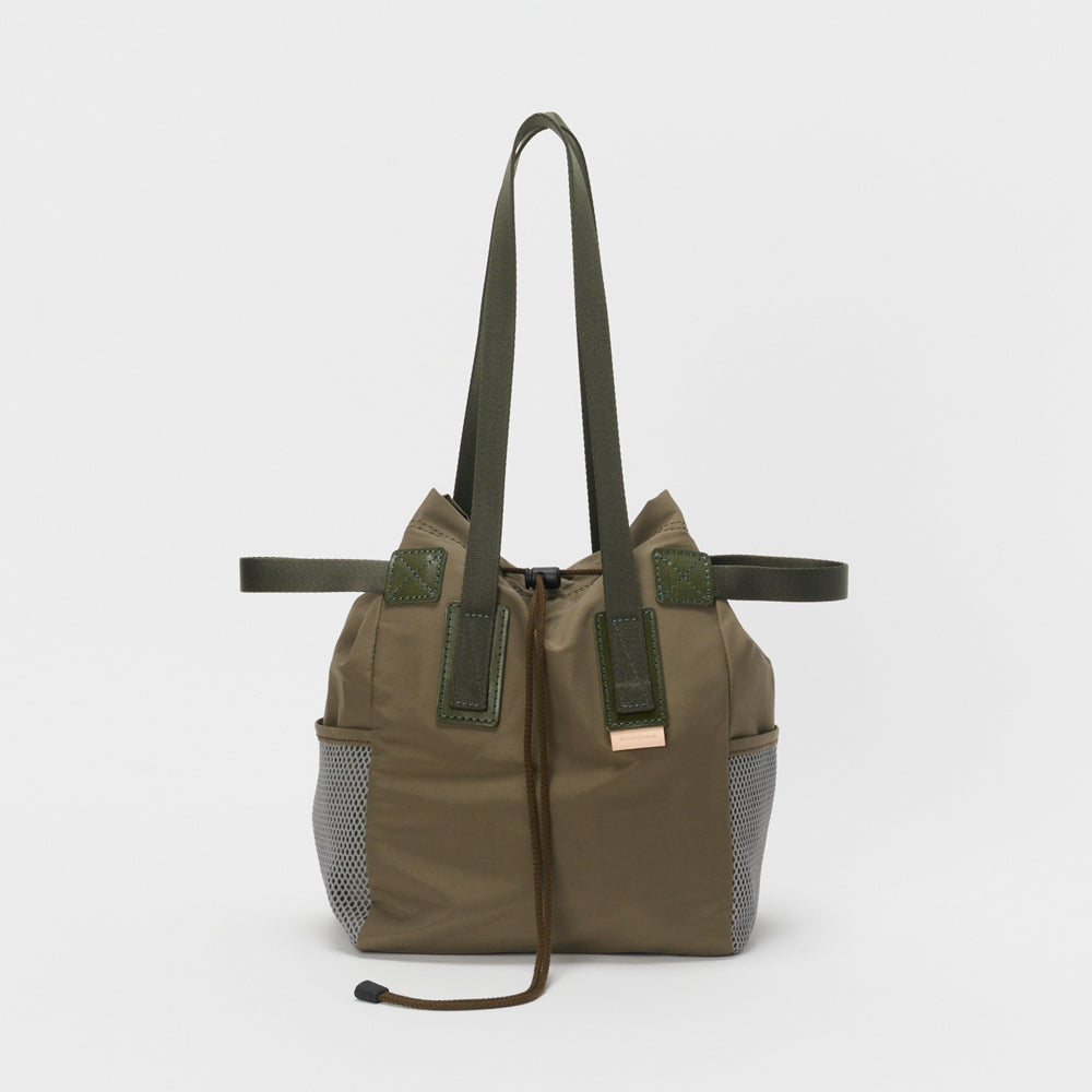 The large opening has an adjuster and can be used as a drawstring bag. The impregnated water-repellent treatment gives it initial water-repellent performance comparable to that of a raincoat, and although the effect fades the more you use it, the fabric itself is also highly water-repellent and abrasion-resistant.