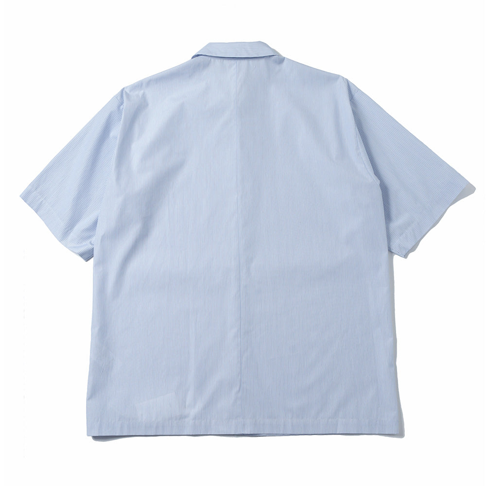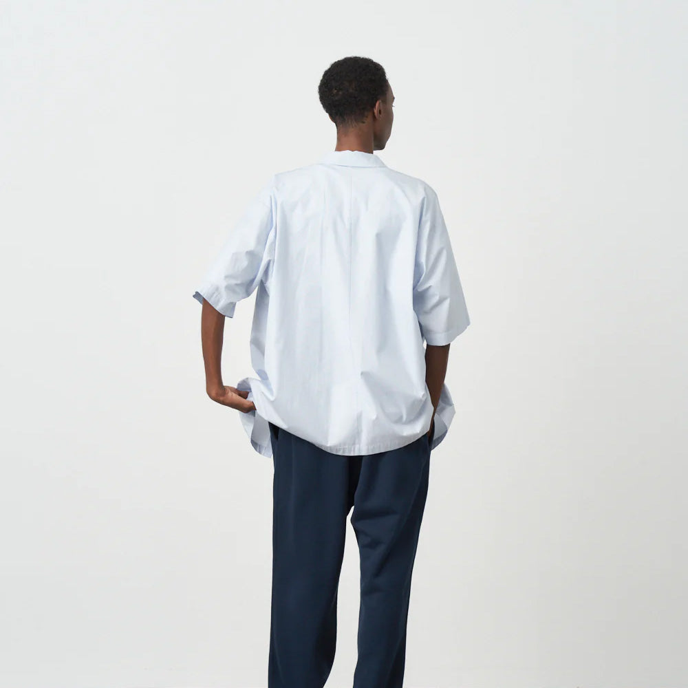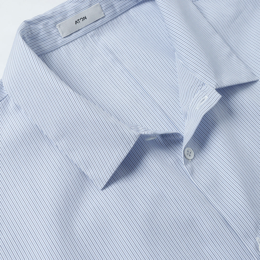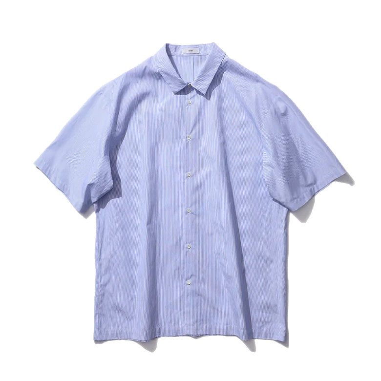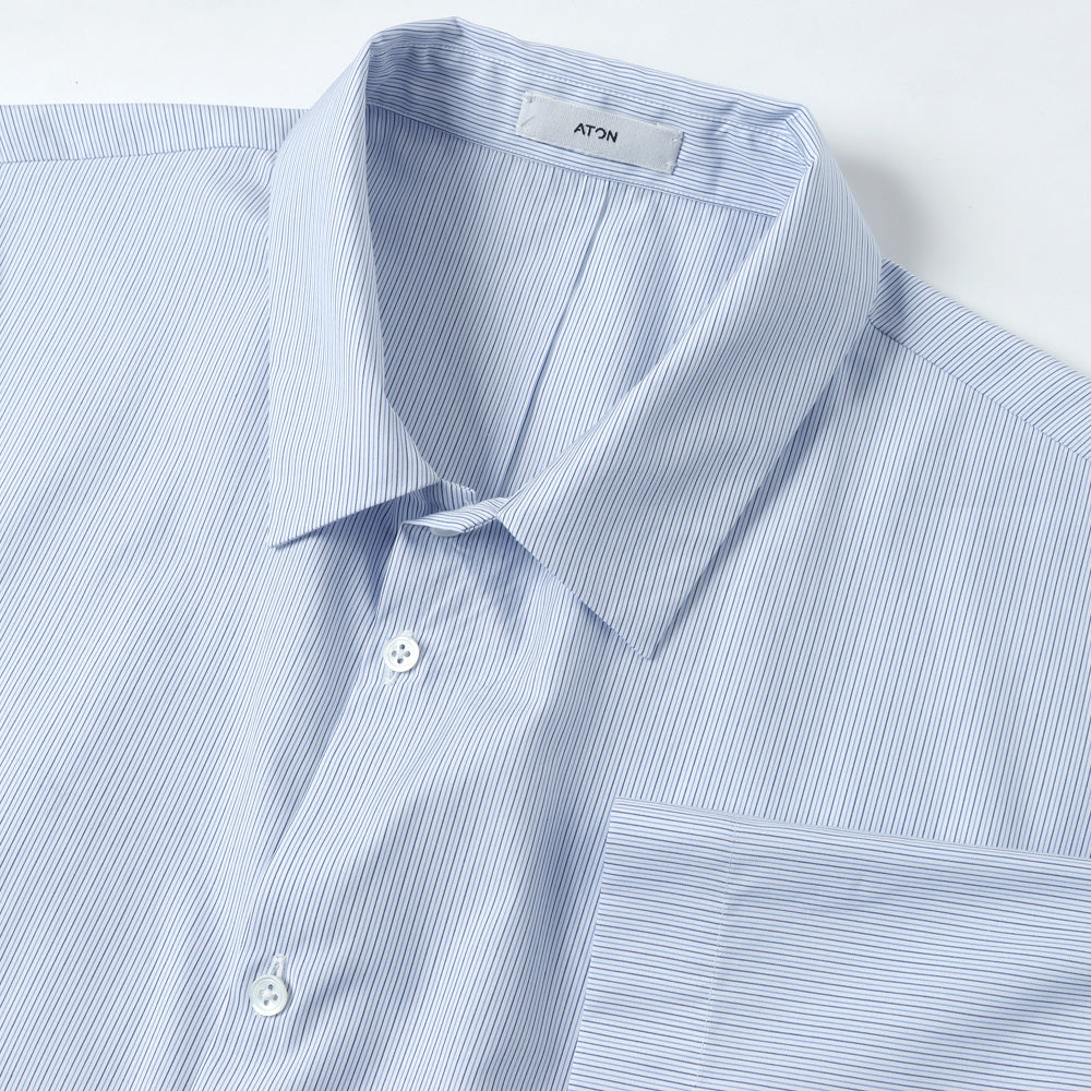 This is ATON's classic short-sleeved shirt, featuring a moderately oversized silhouette. It is an open-neck shirt with no stand collar.