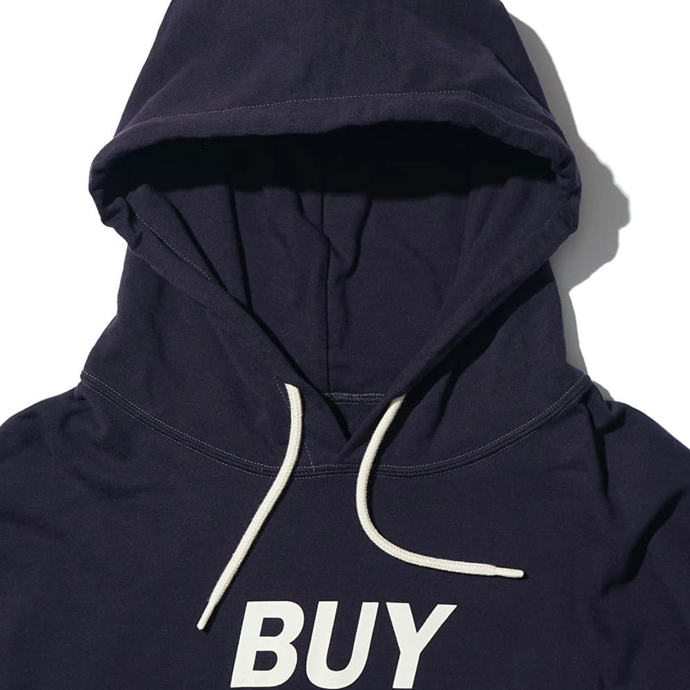 The sweatshirt hoodie features a design without ribbed cuffs (but with a drawstring for tightening the hem). The lightweight cotton mini-back fleece material, combined with the design, makes it highly comfortable and versatile as an inner layer under the jackets in this collection. The chest features three different patterns of the promotional word (sales) featured in this collection, each color-coordinated with the body color.