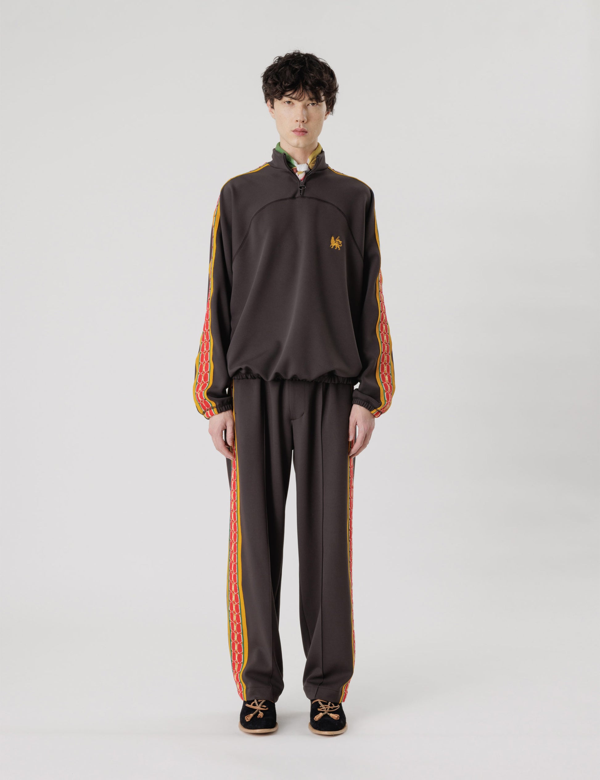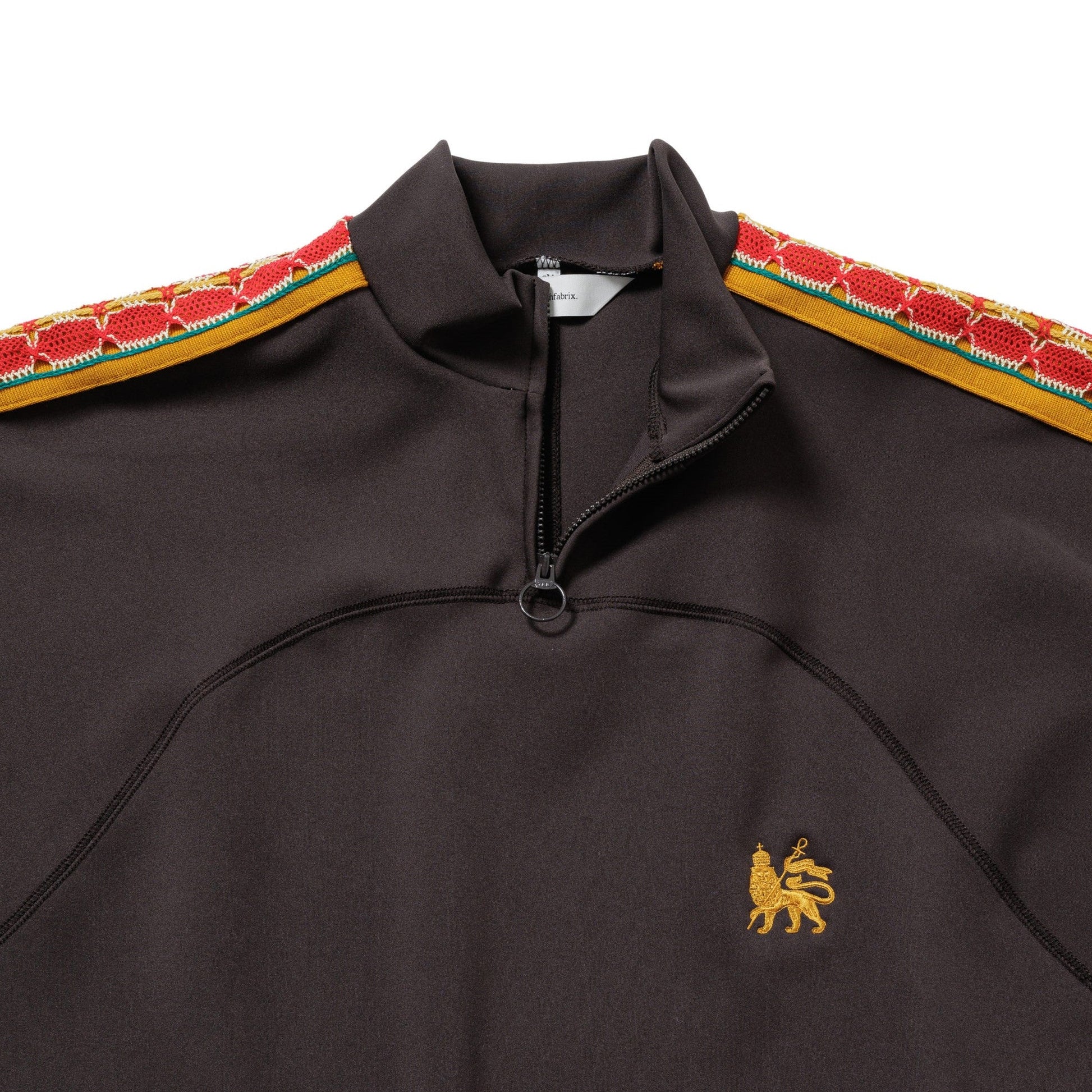 There is a lion embroidered on the left chest and the cuffs and hem are elasticated.