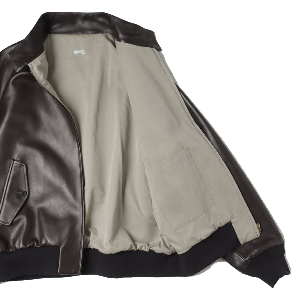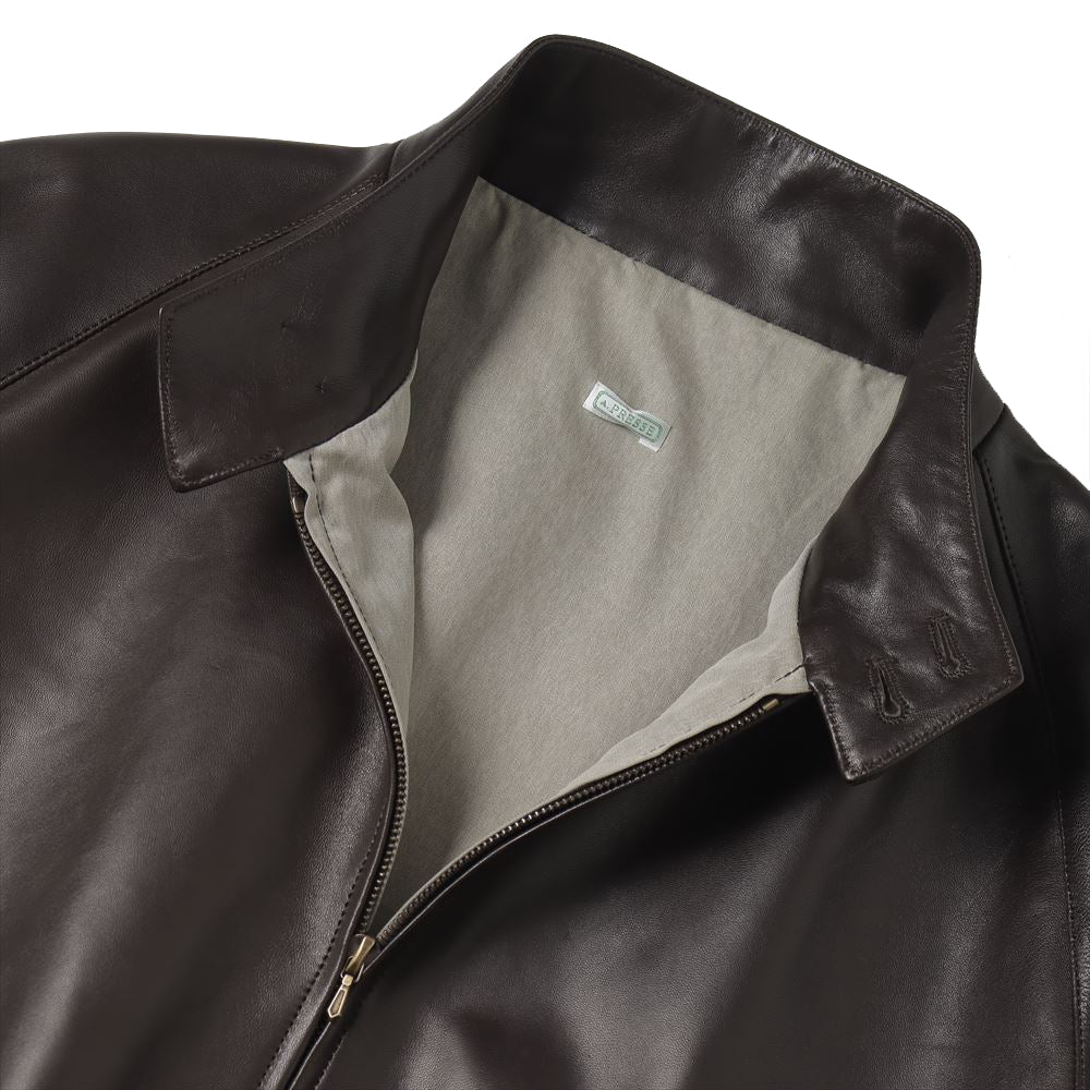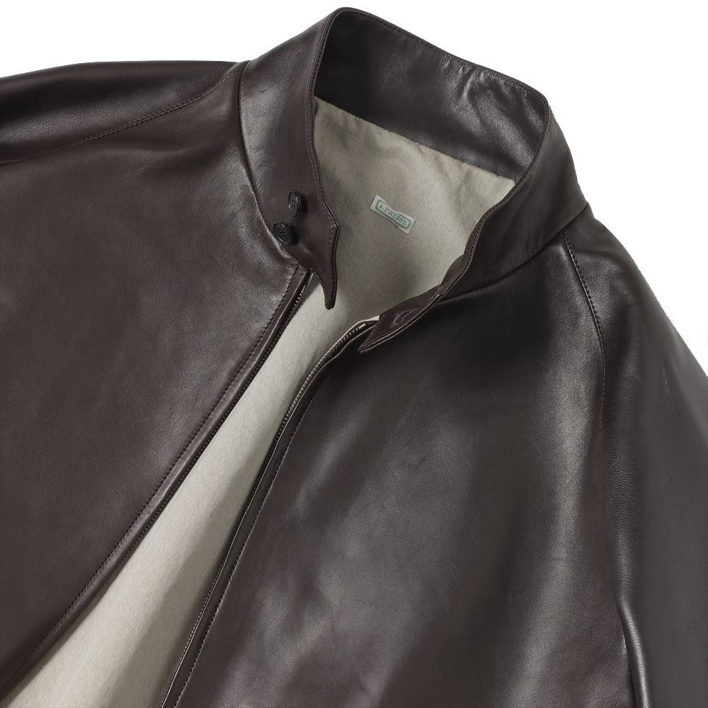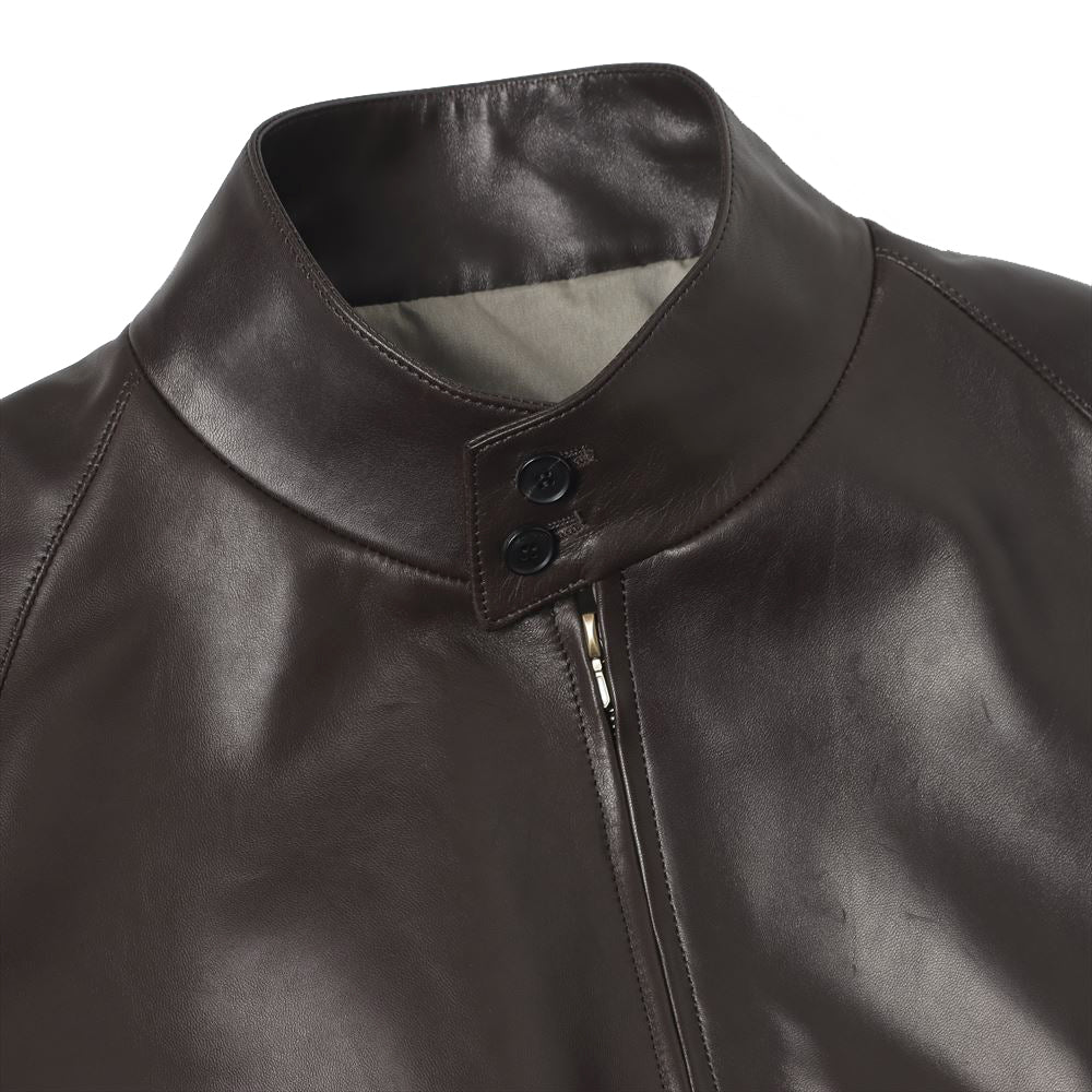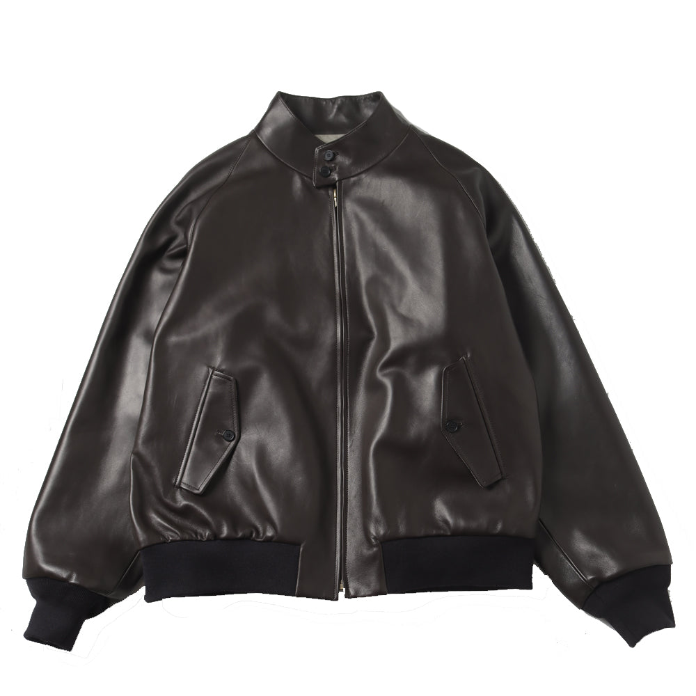 A Harrington jacket with a slightly short length and a moderately loose silhouette.