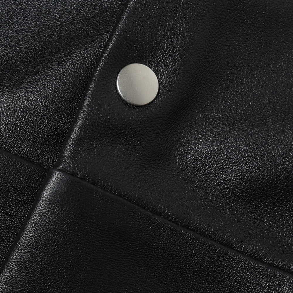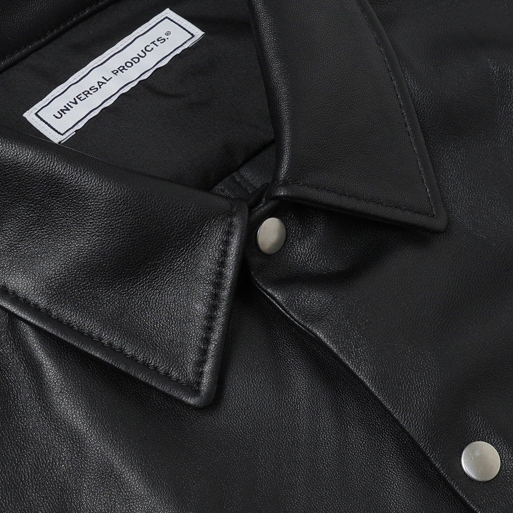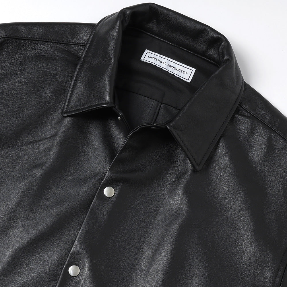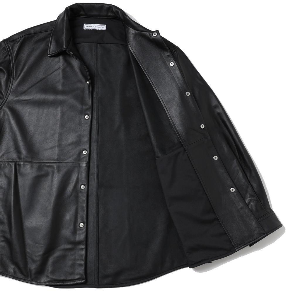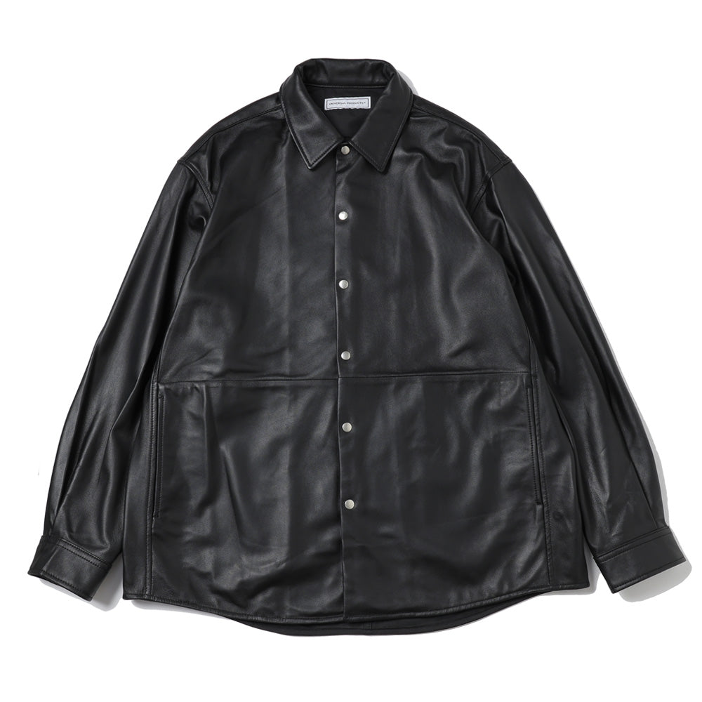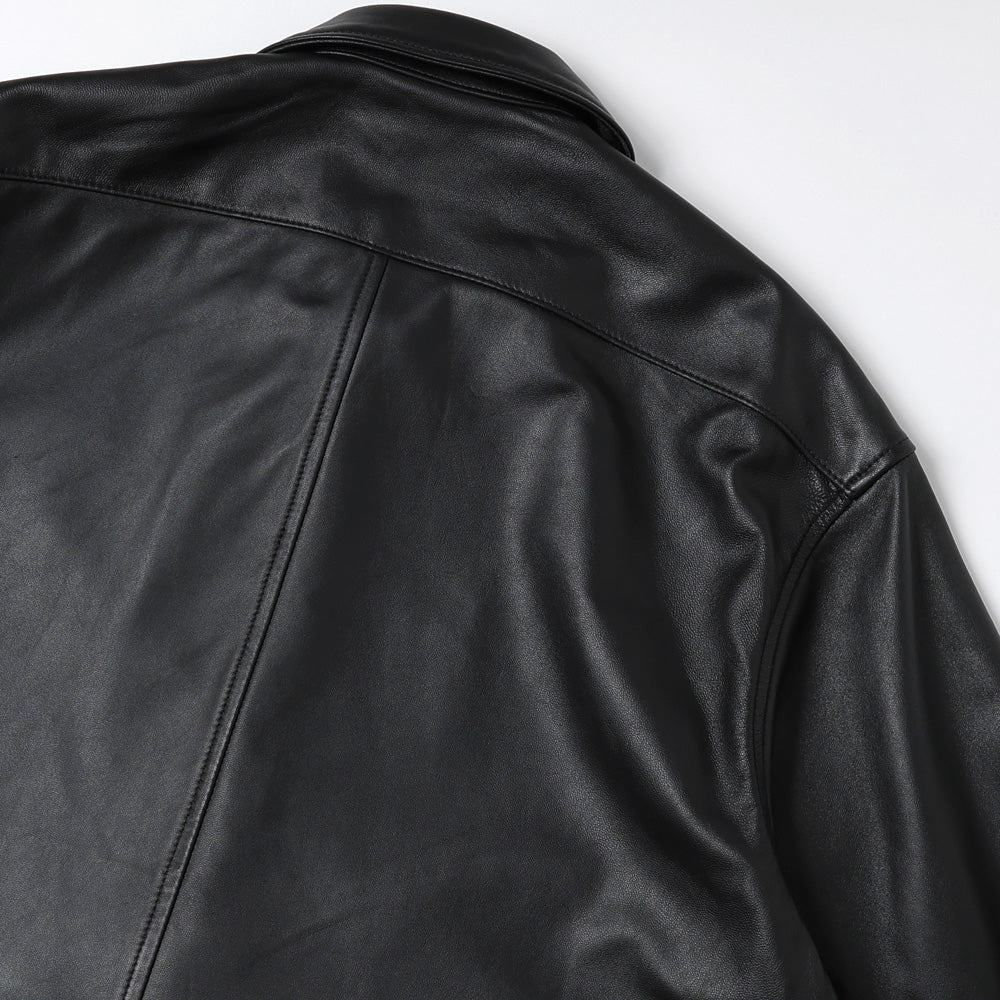 This slightly oversized shirt is made from leather that has been thinned as thin as possible so that it can be worn as a jacket.