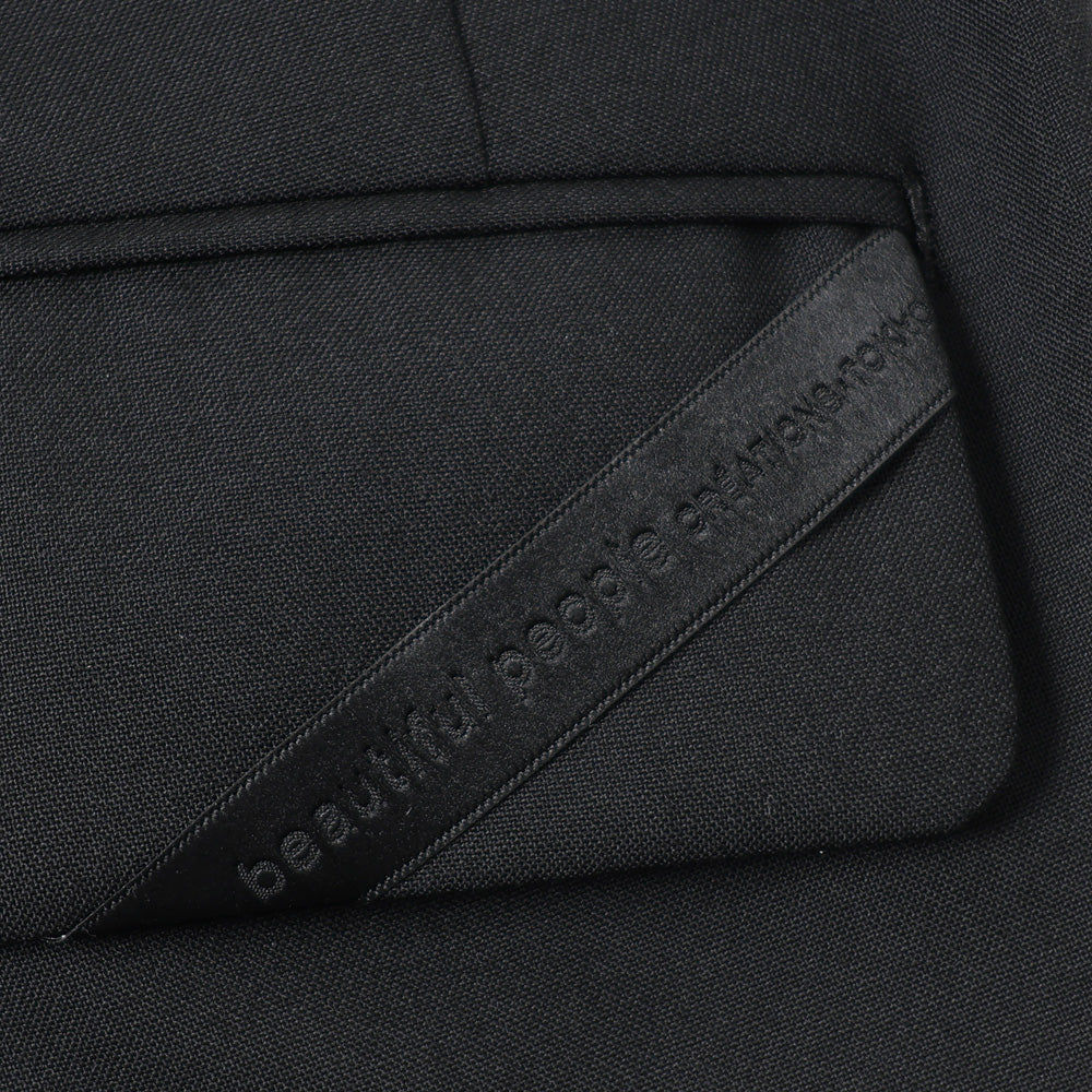 ・Slim pants ・Tapered silhouette ・Unique crease line in the center ・Men's marbelt on the back ・Front zipper opening ・Full length
