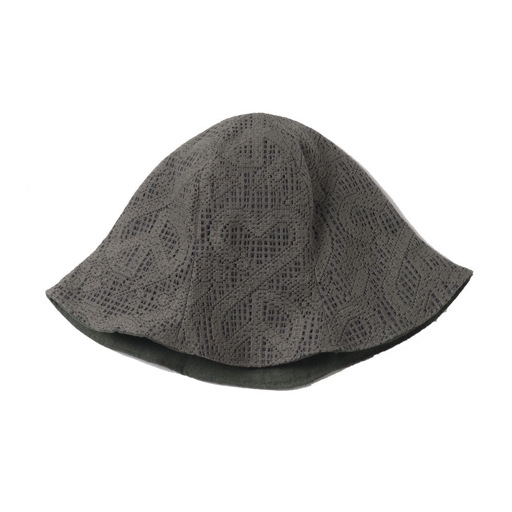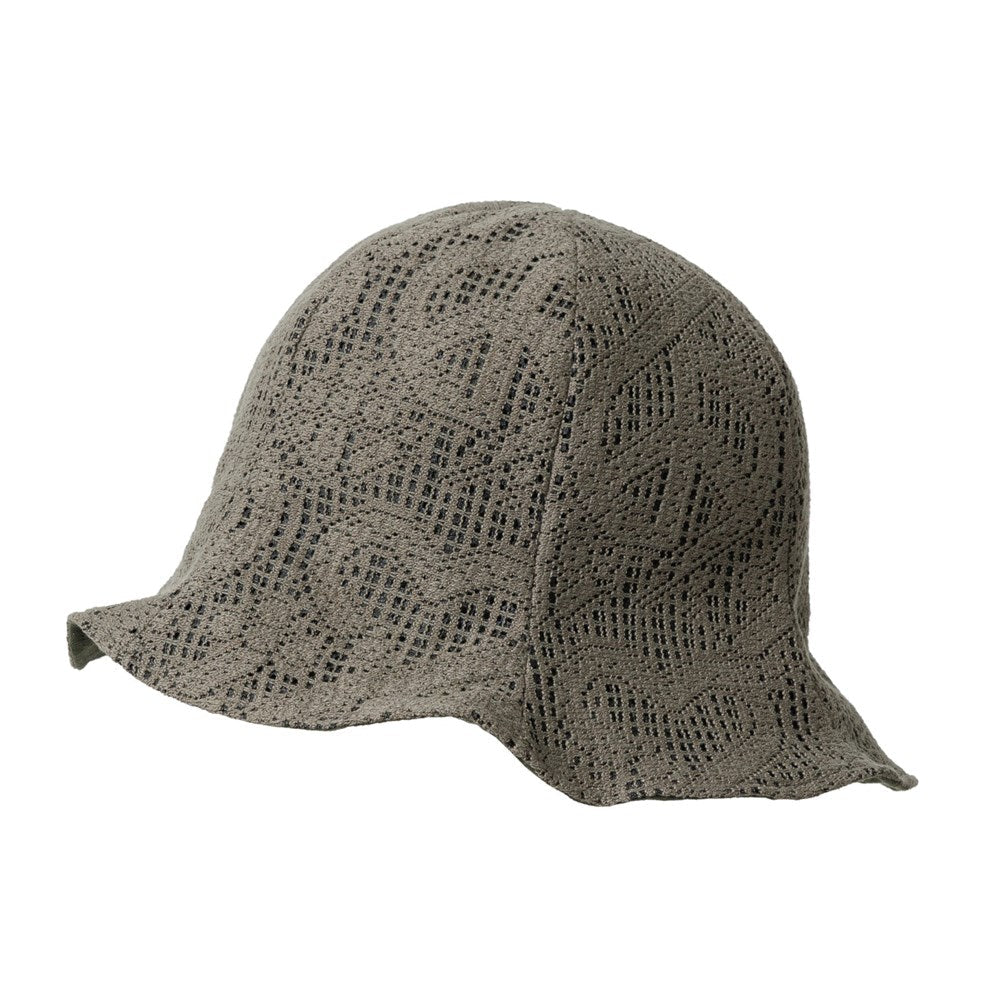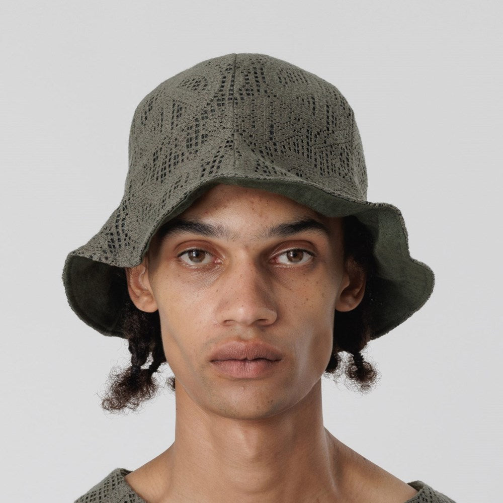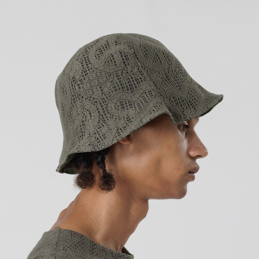 The pattern is reproduced using three different types of knitting using soft cotton yarn.