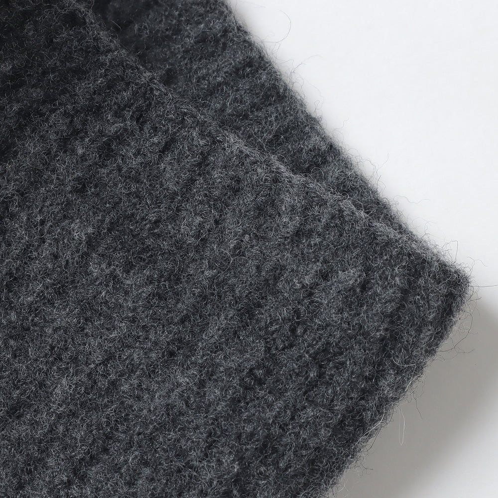 This knitwear is made from Merino wool, which is produced in a very limited area in the south of France, and is knitted loosely and then strongly shrunk. It is characterized by its impressive volume and light texture.
