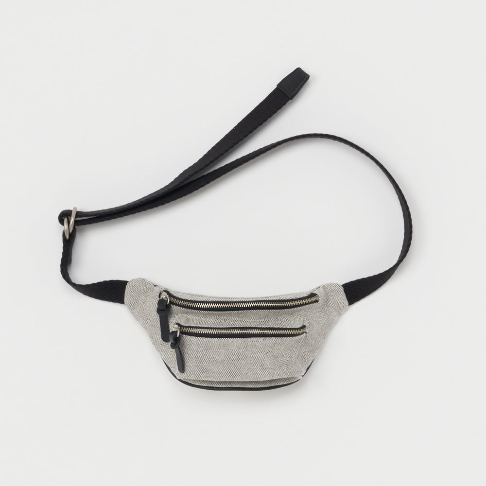 This micro-sized waist pouch is made using No.8 canvas dungaree fabric and leather piping, finished with a light and dark color block design.