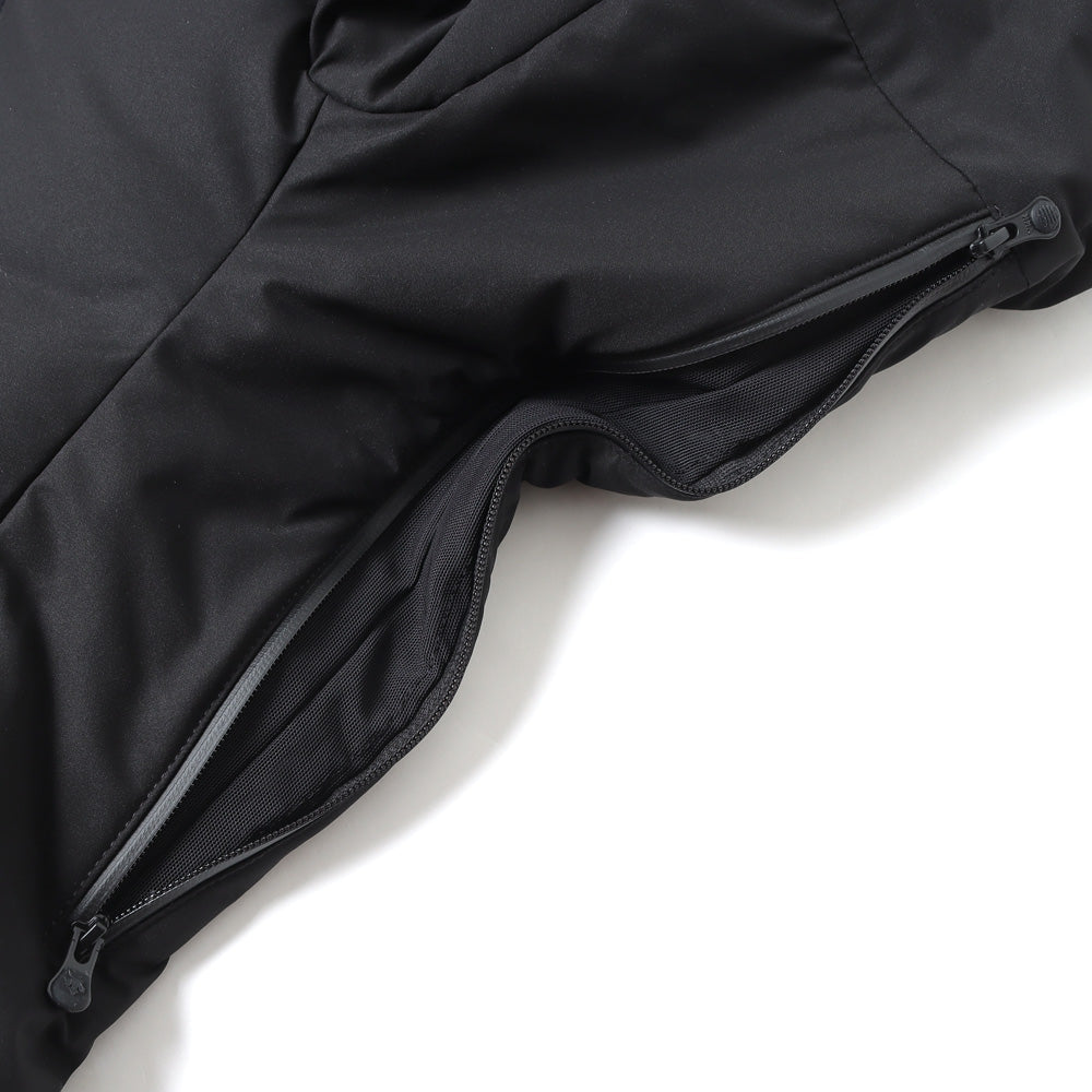 The two rows of zippers and the mesh fabric placed between them allow outside air to enter the garment and release unpleasant heat and moisture that tends to build up inside the jacket.
