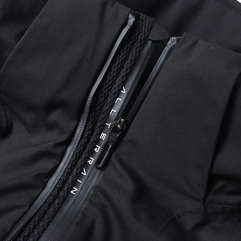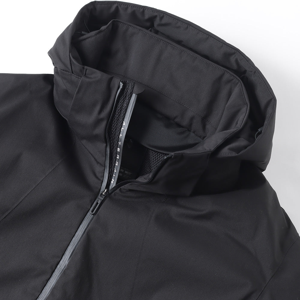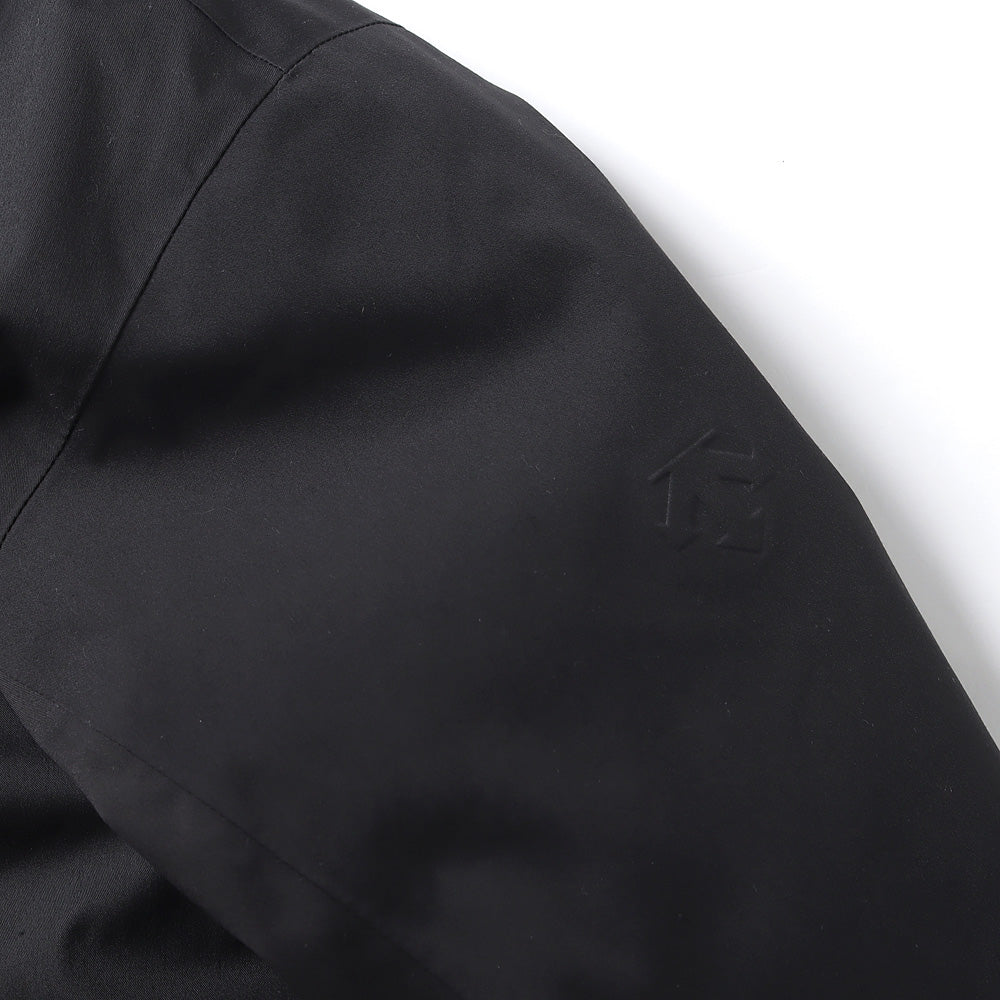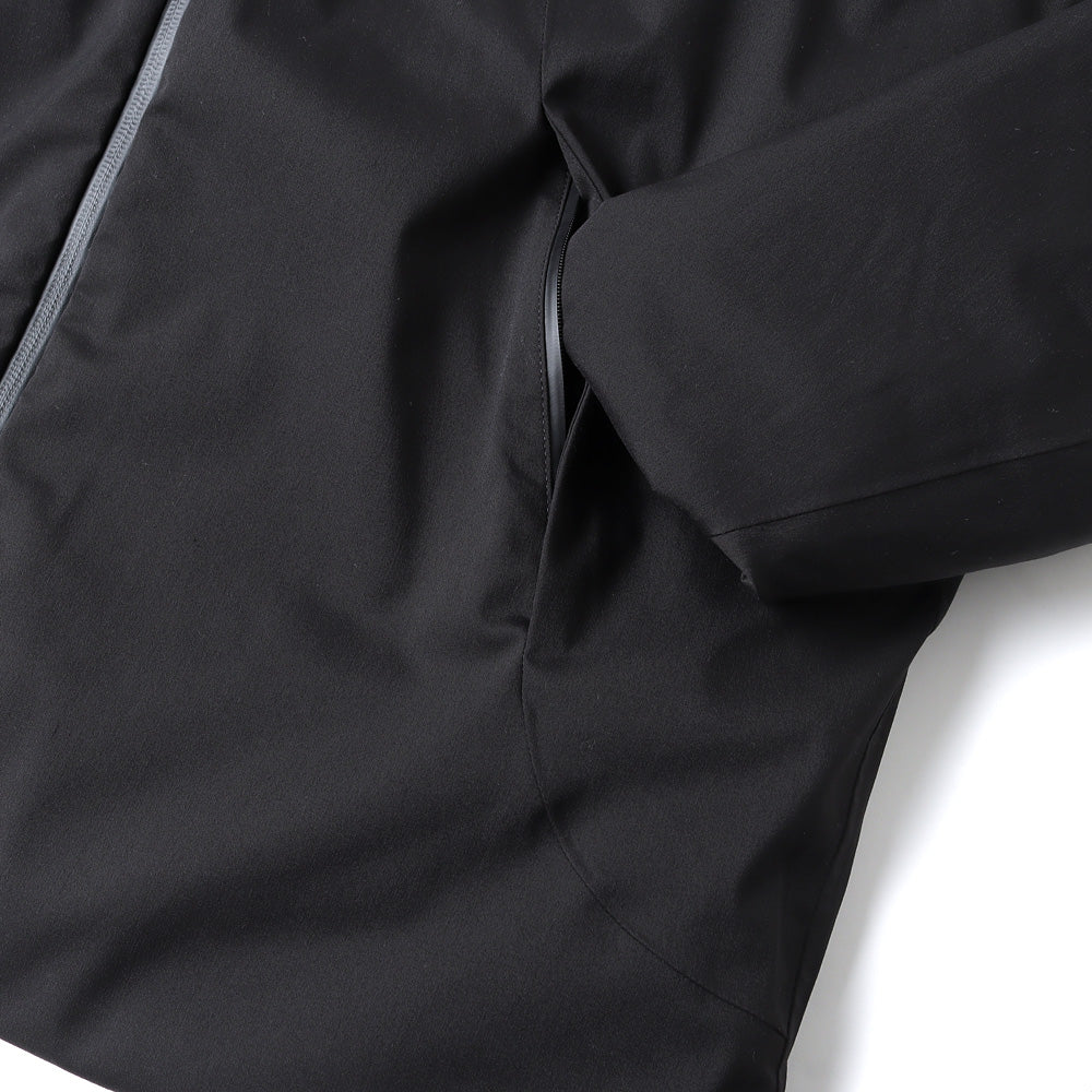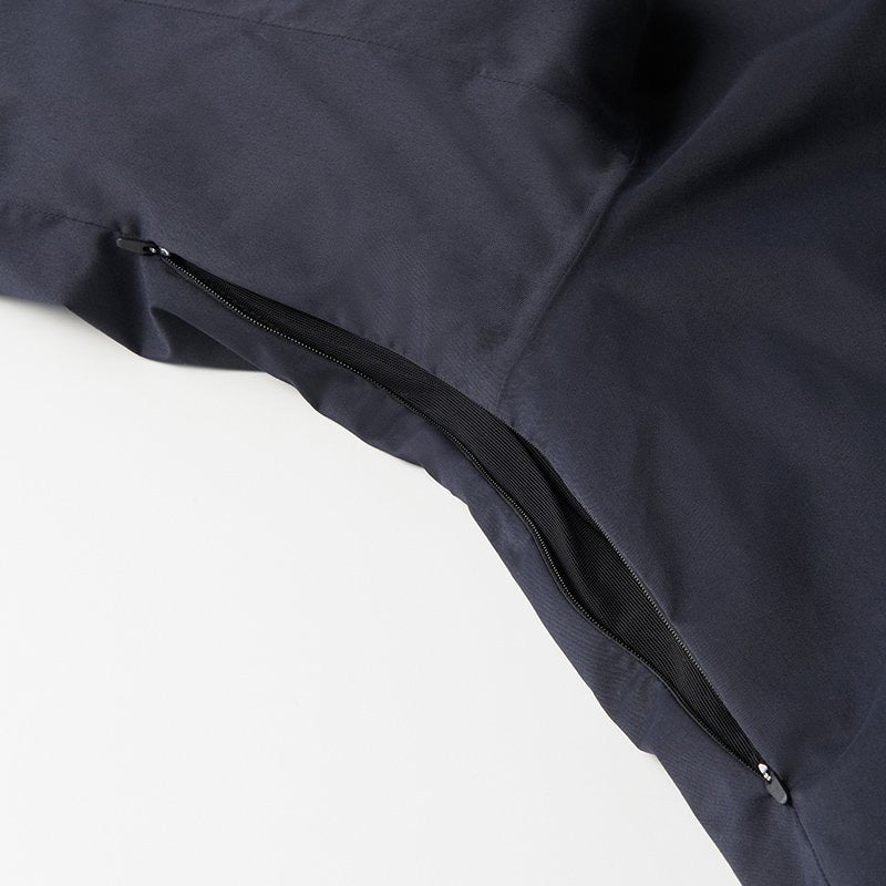 The outer material is SAITOS NATURAL TWILL 2L, which has a texture like natural fibers while also being highly functional with breathability and waterproofing. The lining is made of HEAT NAVI, which converts light into heat and provides active heat retention. The dual zip ventilation system used in the front zipper area allows outside air to enter the garment through two rows of zippers and the mesh fabric placed between them, allowing uncomfortable heat and moisture that tend to build up inside the jacket to escape.