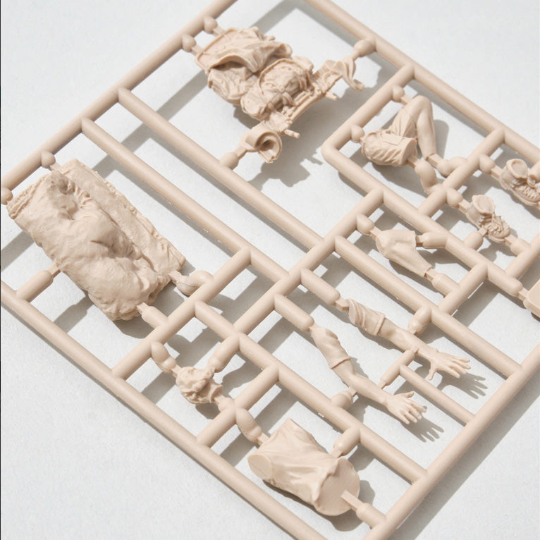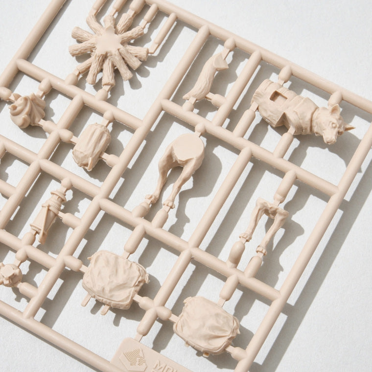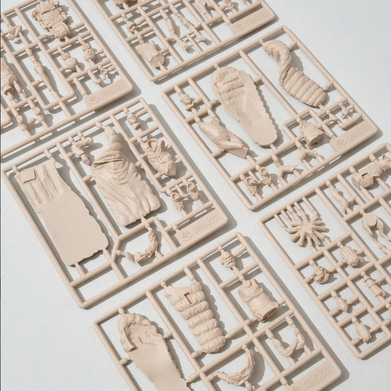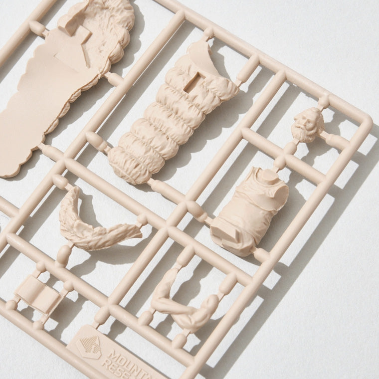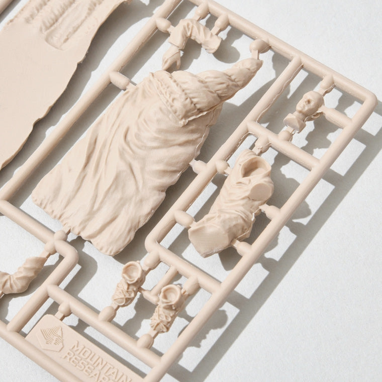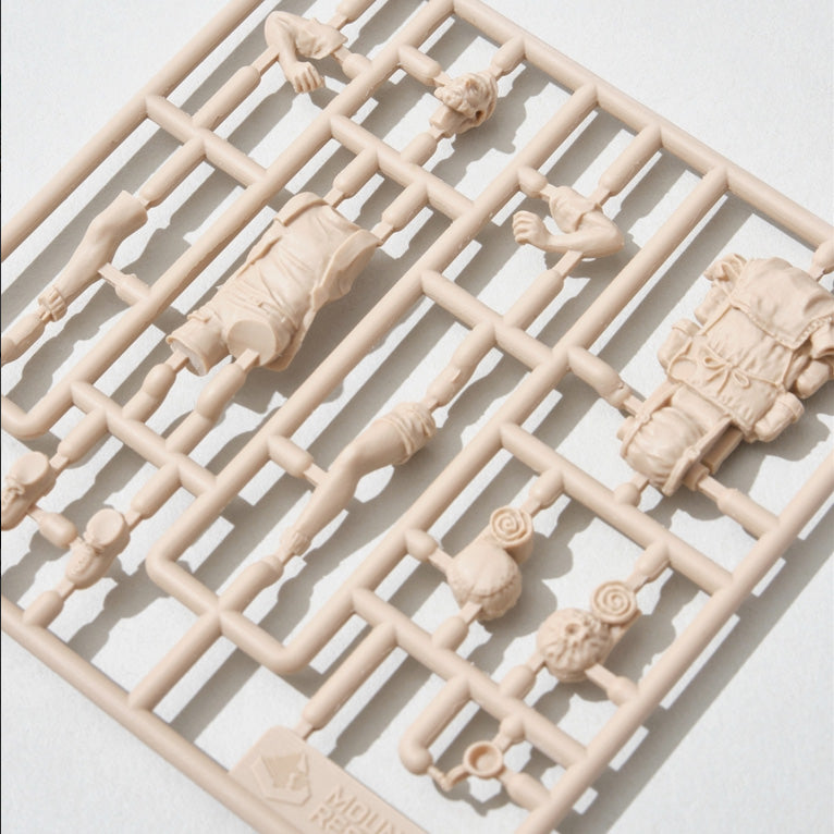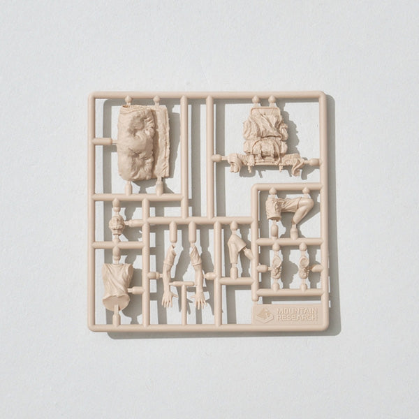 The familiar Mountain Man figures are now available as plastic models in 1/35 scale! The figures, which are not meant to be painted, are made up of 6 different characters from previous series. Can be assembled.