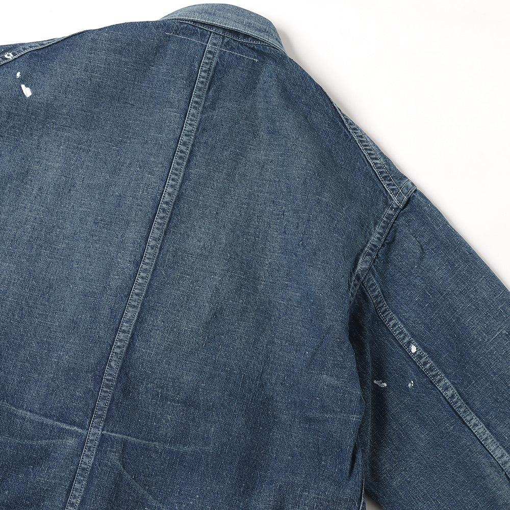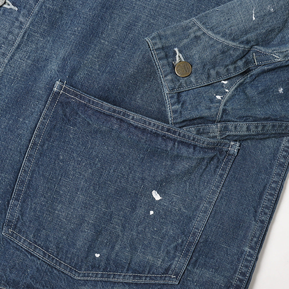 Based on a 1940s Chore Jacket purchased by KAPTAIN SUNSHINE designer Kojima at BerBerJin. Made from New Manual's original light-ounce denim, it is based on a vintage sample selected by Fujiwara and has been given a new fade and paint treatment.