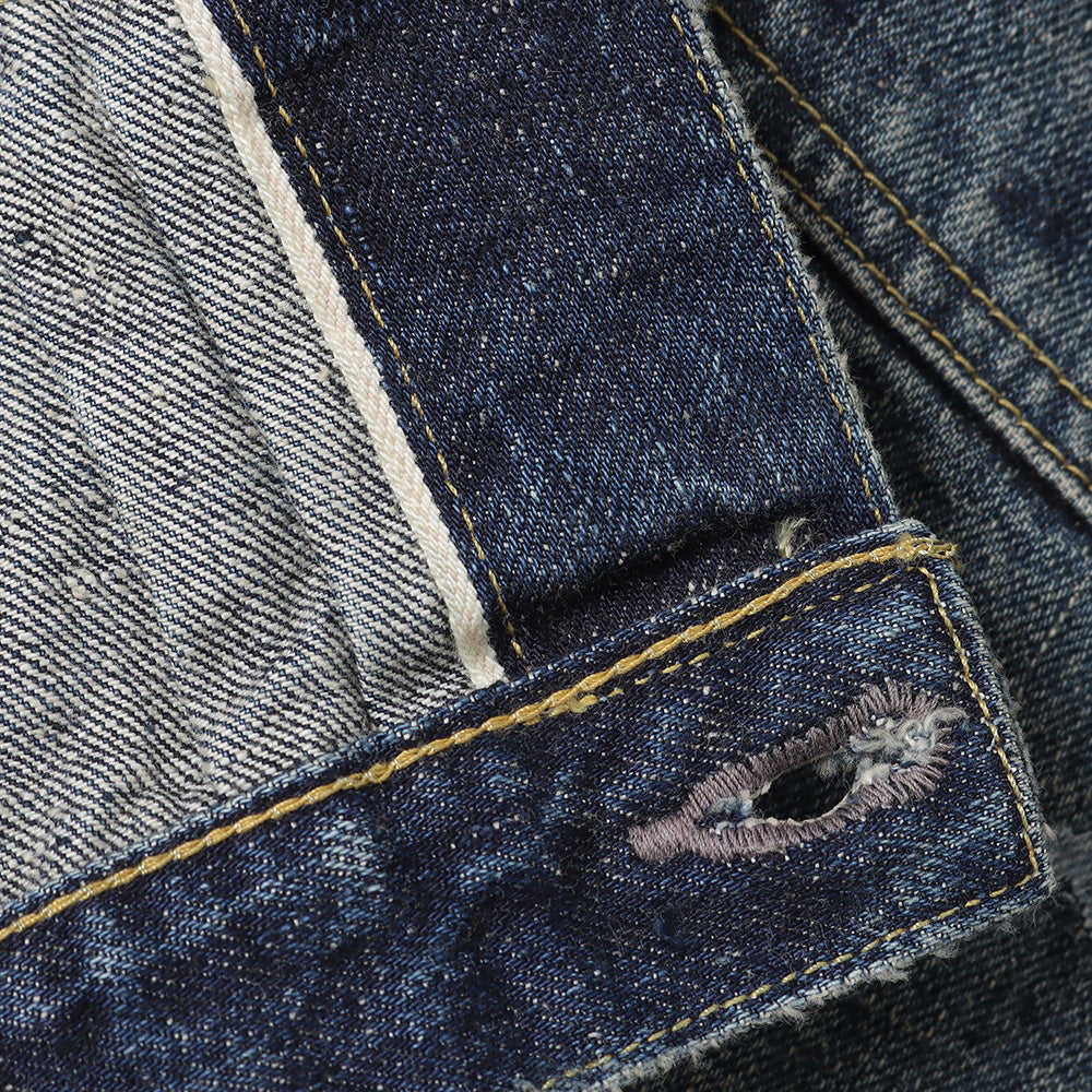 Based on a T-BACK Denim Jacket purchased by KAPTAIN SUNSHINE designer Kojima at BerBerJin. The size and details remain the same, but the vintage sample chosen by Fujiwara has been given a new fade and paint treatment. New Manual's original denim is used.
