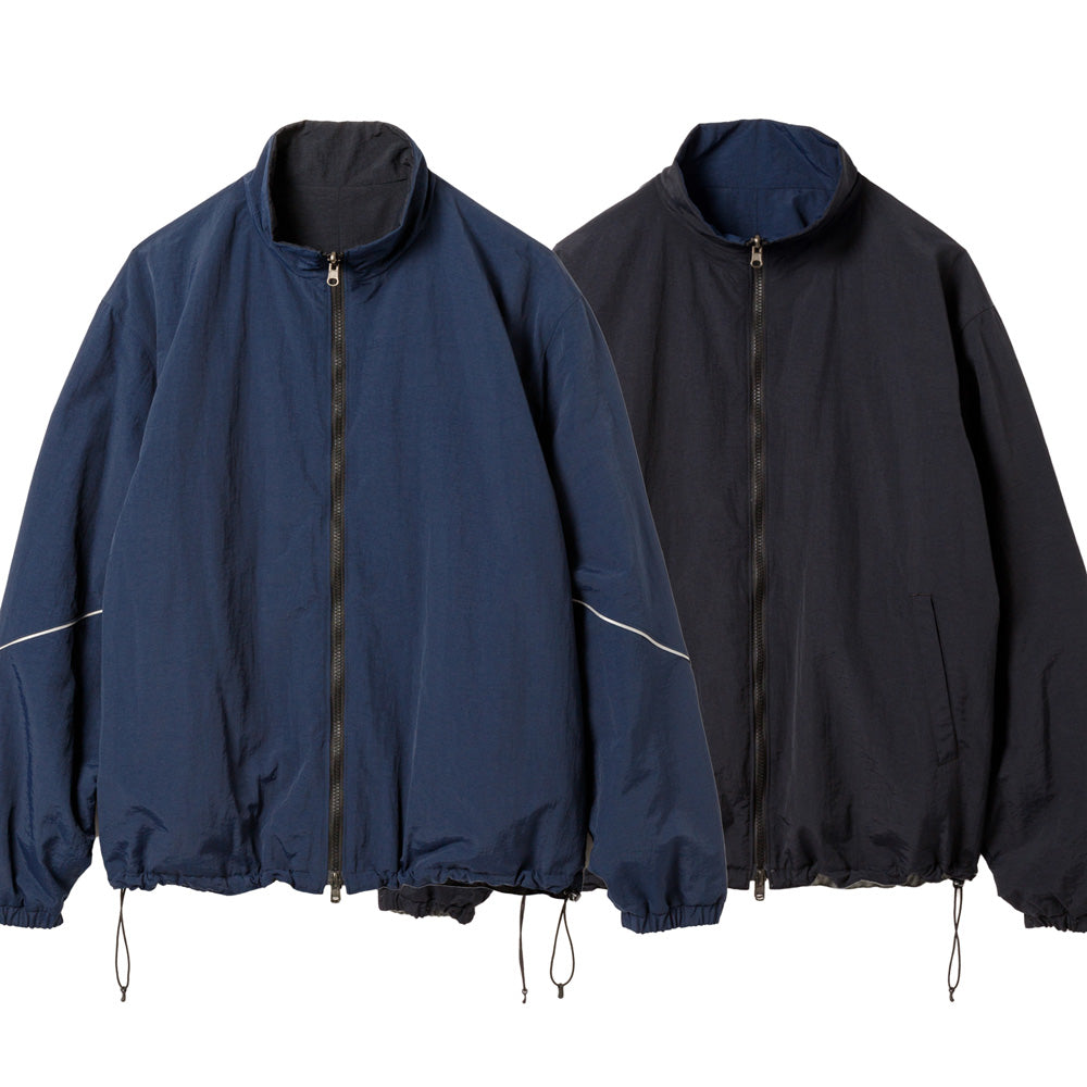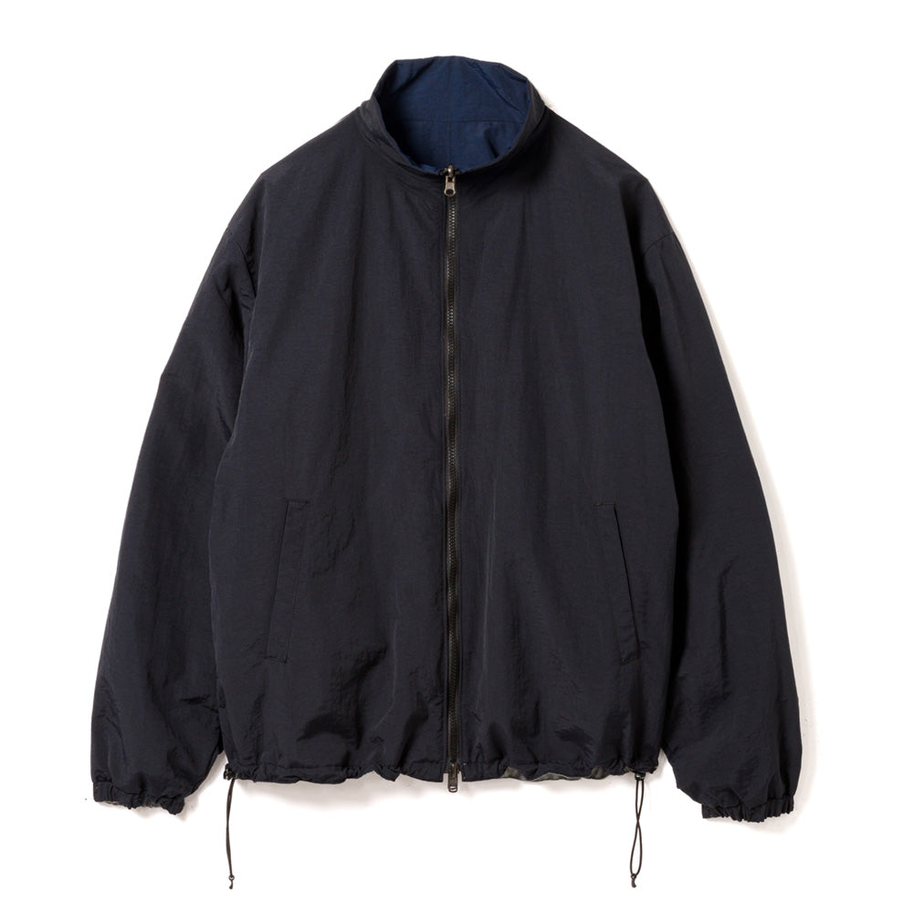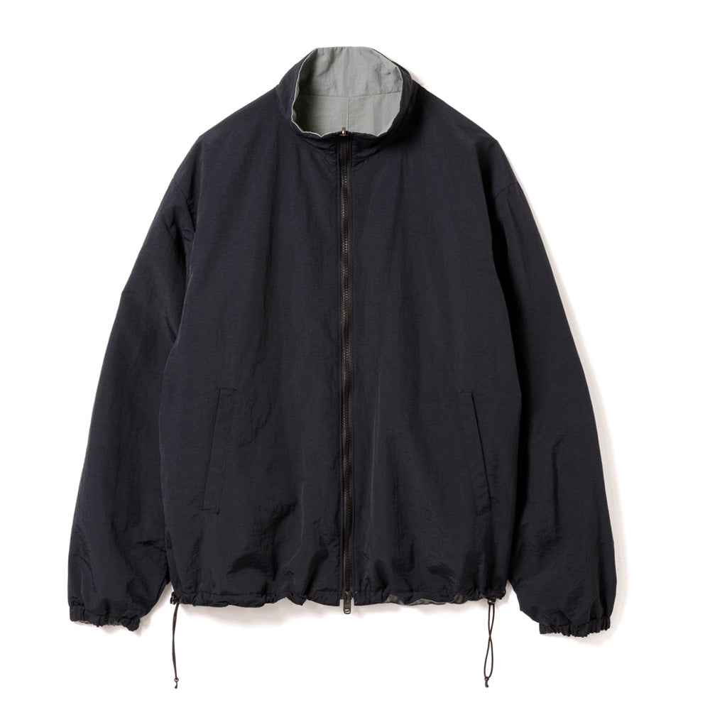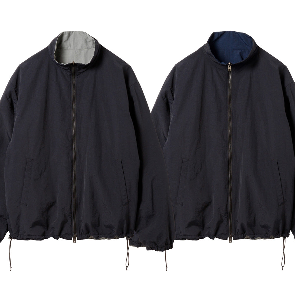 This reversible, padded stand-up collar jacket is made of taffeta fabric, which is water-repellent and lightweight.