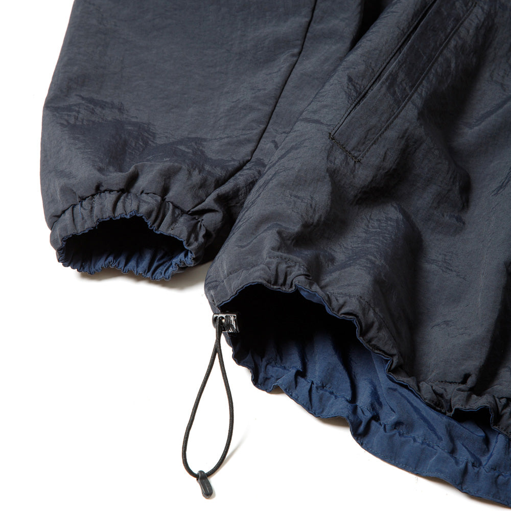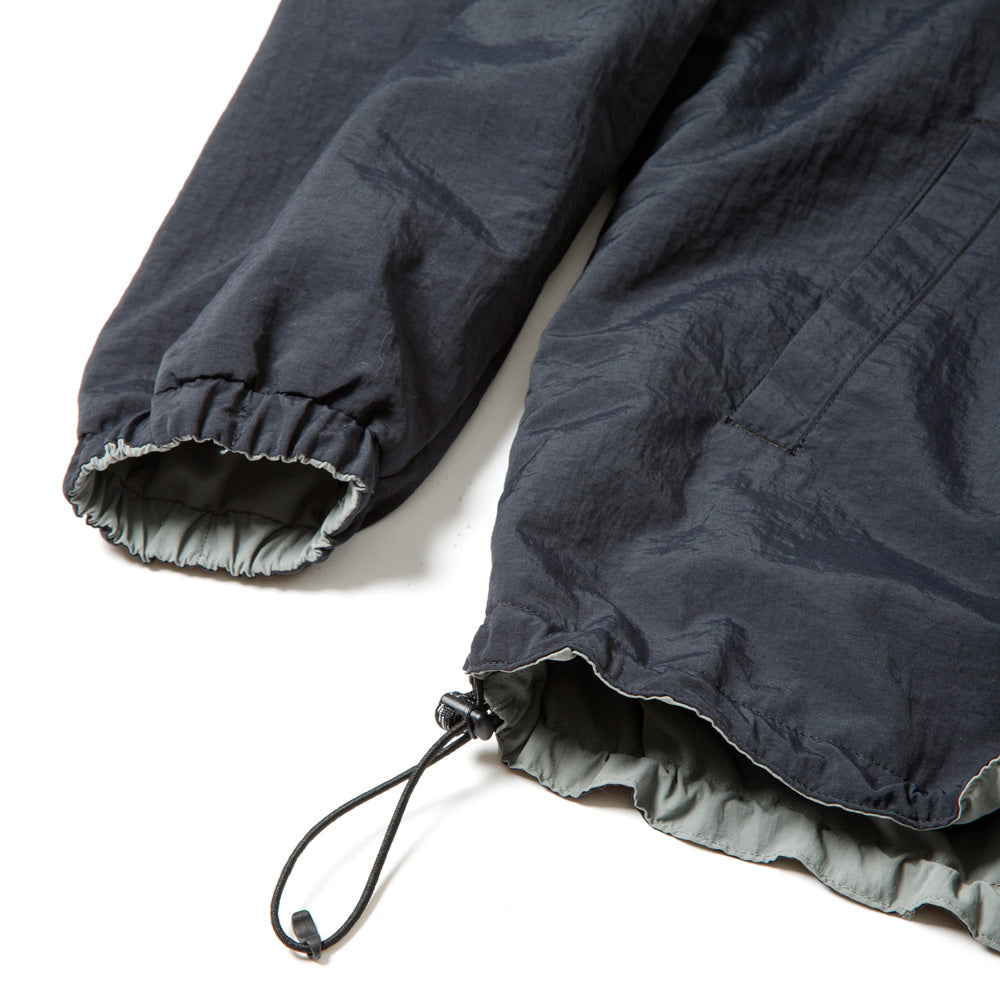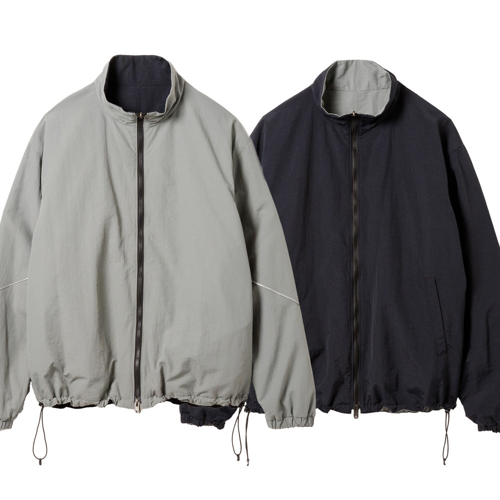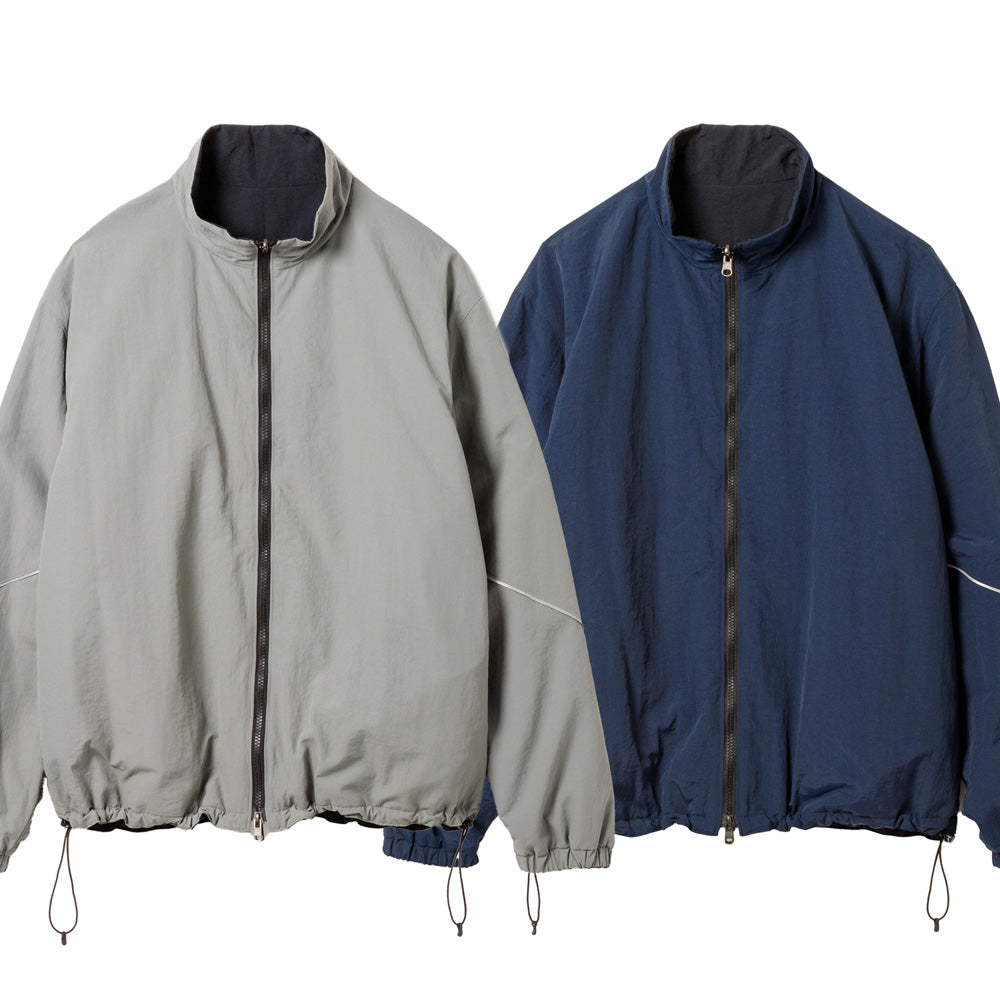 This reversible, padded stand-up collar jacket is made of taffeta fabric, which is water-repellent and lightweight.