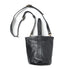 A drawstring bag with a distinctive bucket shape and one-handed design.