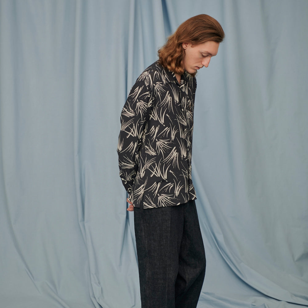 ORIGINAL PRINTED OPEN COLLAR SHIRTS(PINE NEEDLE)Long-sleeve