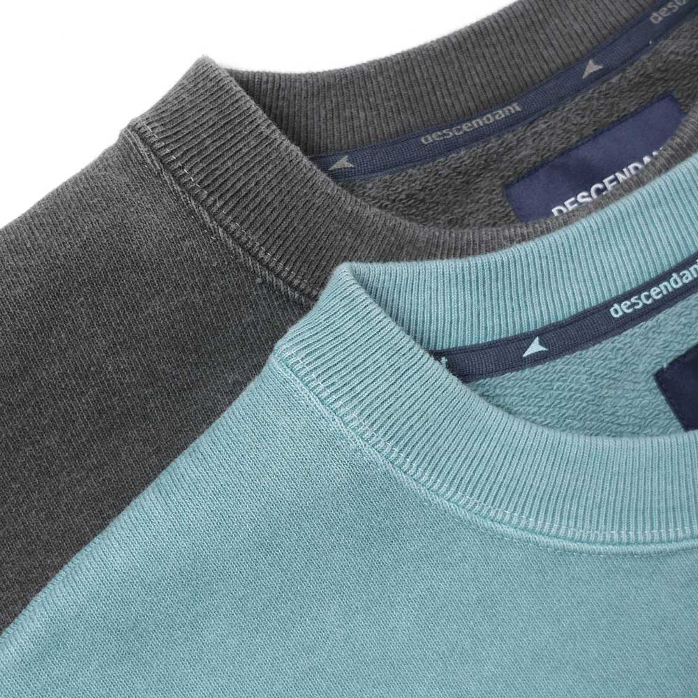 This crew neck sweatshirt is made from a not-too-thin cotton fleece with a pigment dye finish.