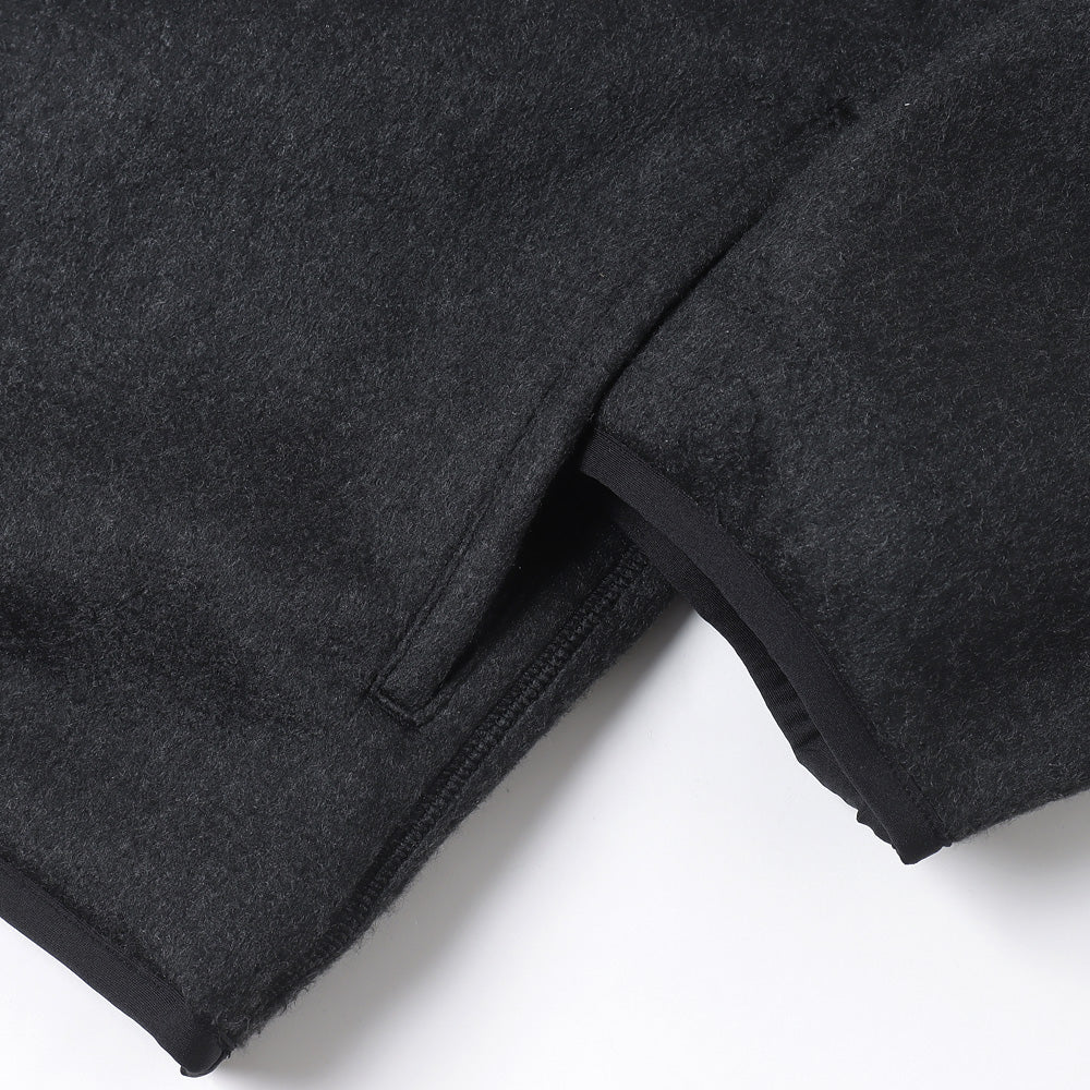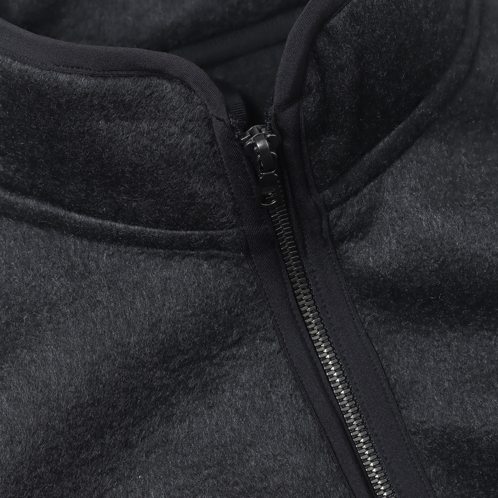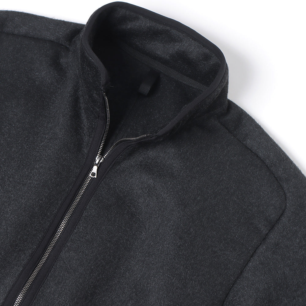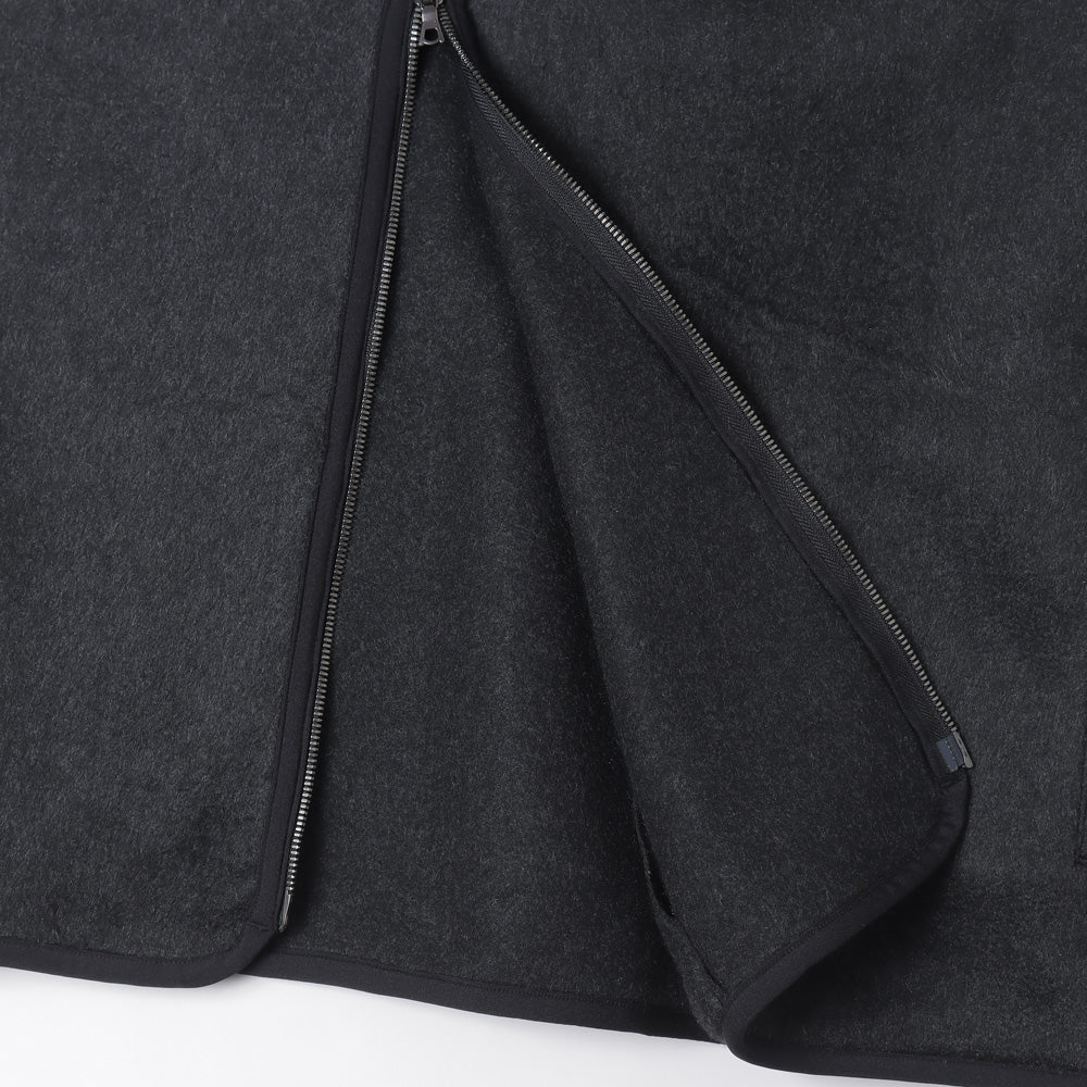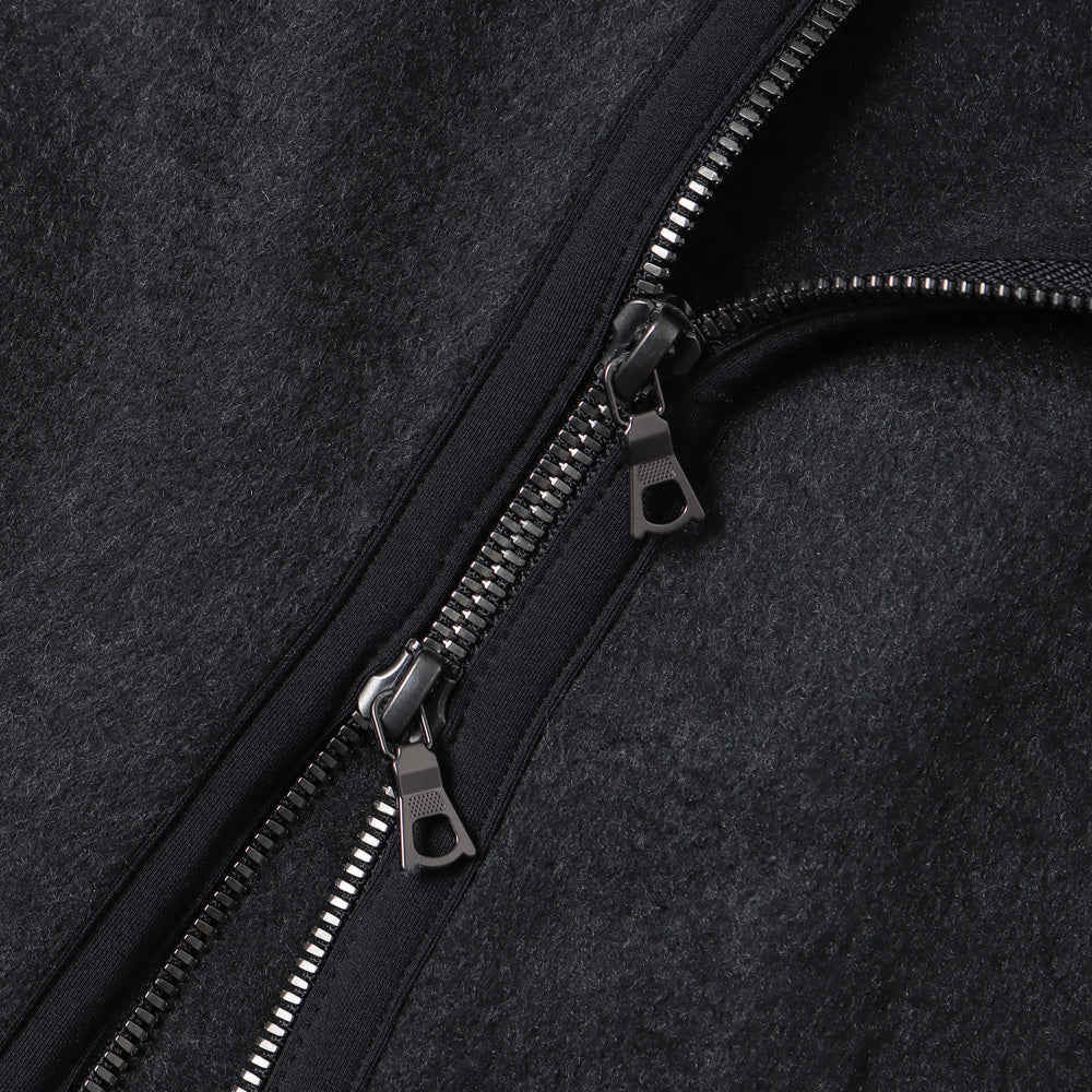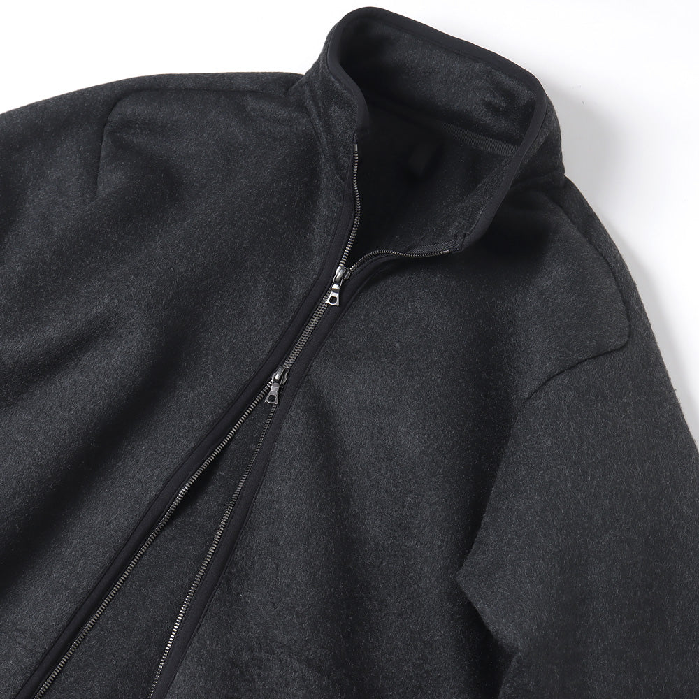 Polyester and silk are blended with cotton to create yarn. This fleece is brushed on both sides using traditional methods in Japan. The fabric combines the smoothness and water absorption and moisture release properties of silk with the quick-drying properties of polyester.