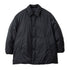 This bal collar coat is made of PERTEX QUANTUM AIR, which is made of extremely fine nylon woven at a high density, and boasts excellent durability and wind resistance. It is luxuriously stuffed with down and has high heat retention. The surface is a clean piece with a flat finish, omitting decorations such as quilting and gathers.