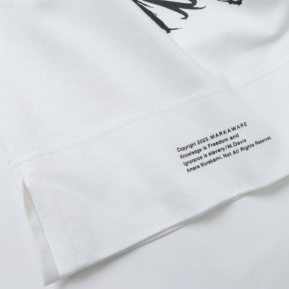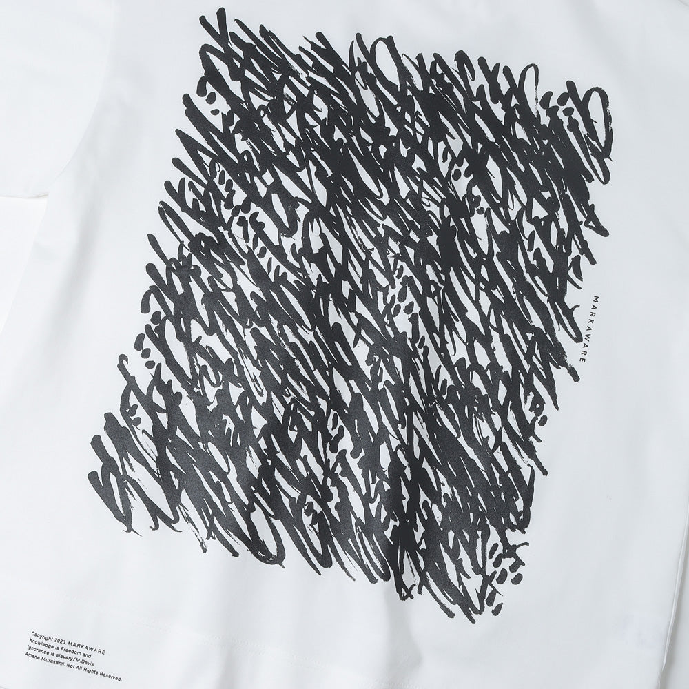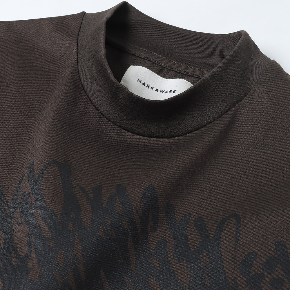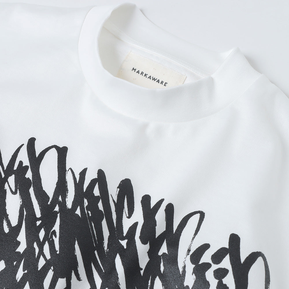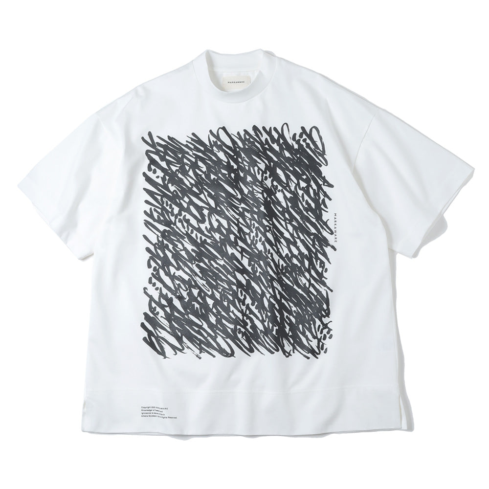 This cut-and-sew top is made from organic cotton and has a moderately loose silhouette, with graphics that look like they were hand-painted.