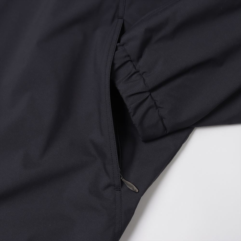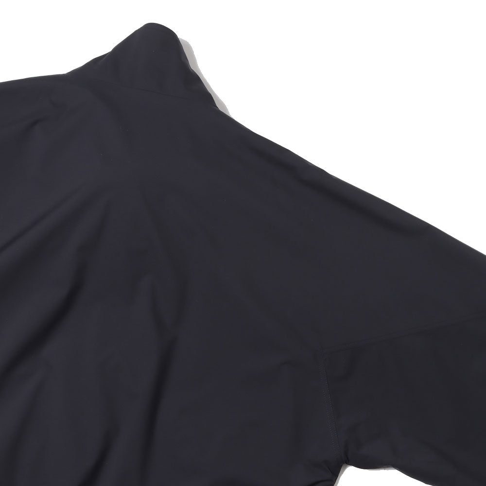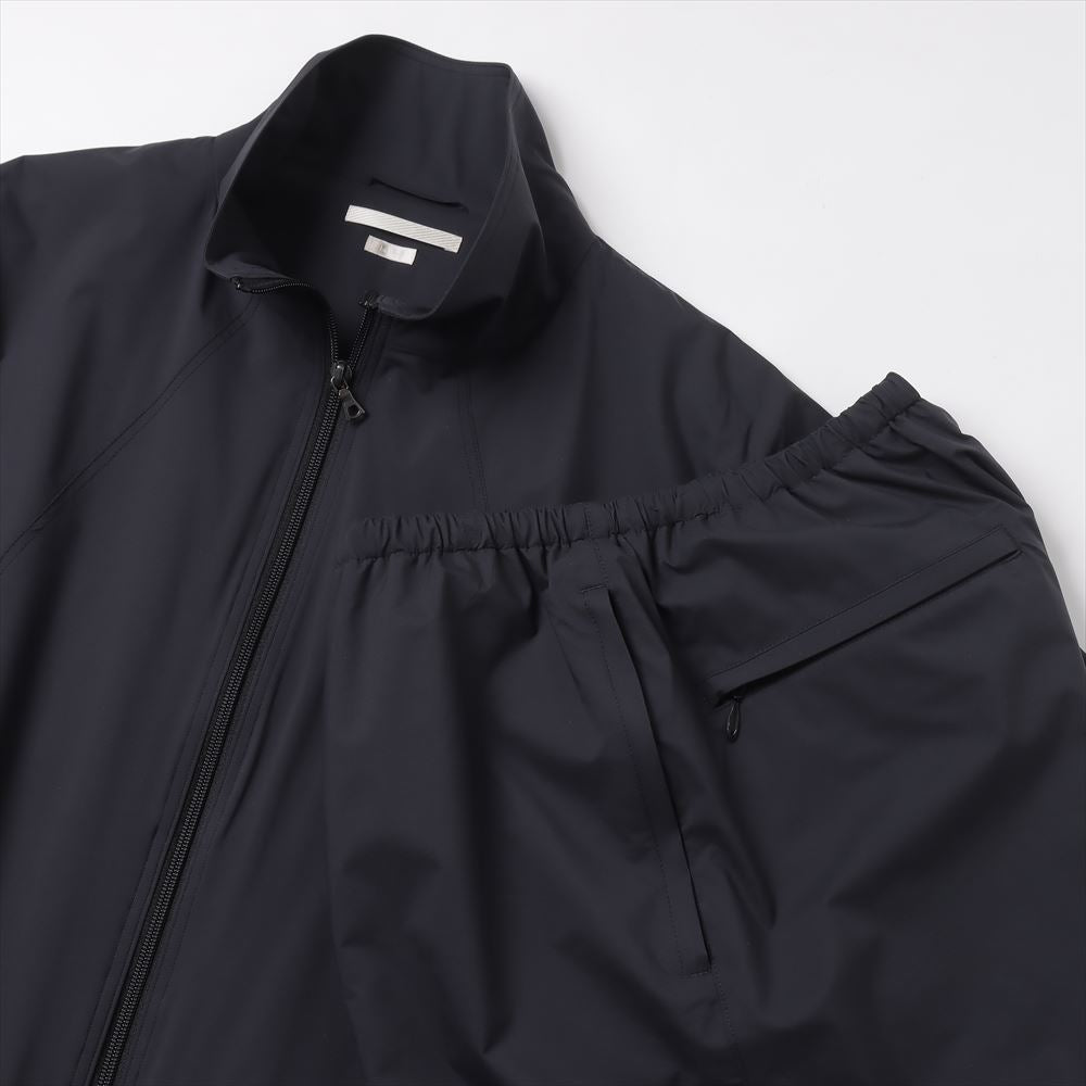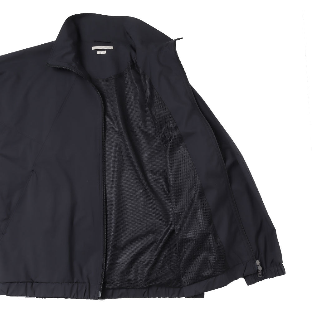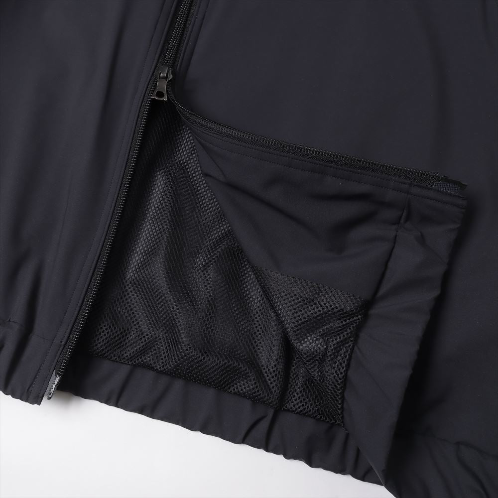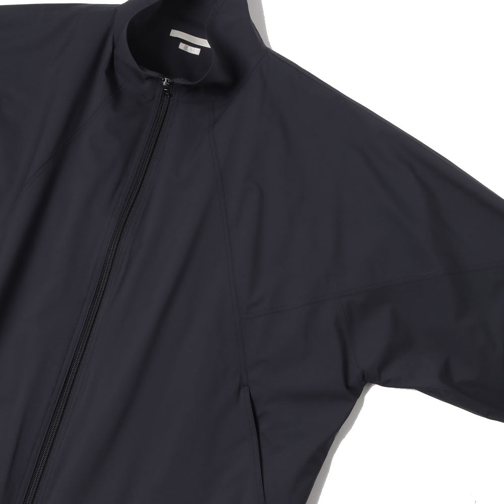 Based on a vintage military track jacket, this jacket has a more three-dimensionally balanced silhouette. Mesh is used for the lining. The double-weave structure with unevenness on the reverse side allows the material to be dot-bonded to the skin, allowing it to stay away from the skin even when sweating. The fabric is water-resistant while still maintaining breathability.