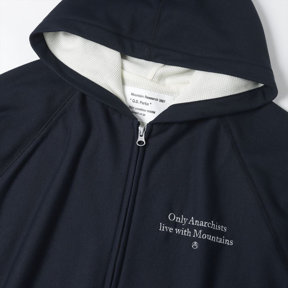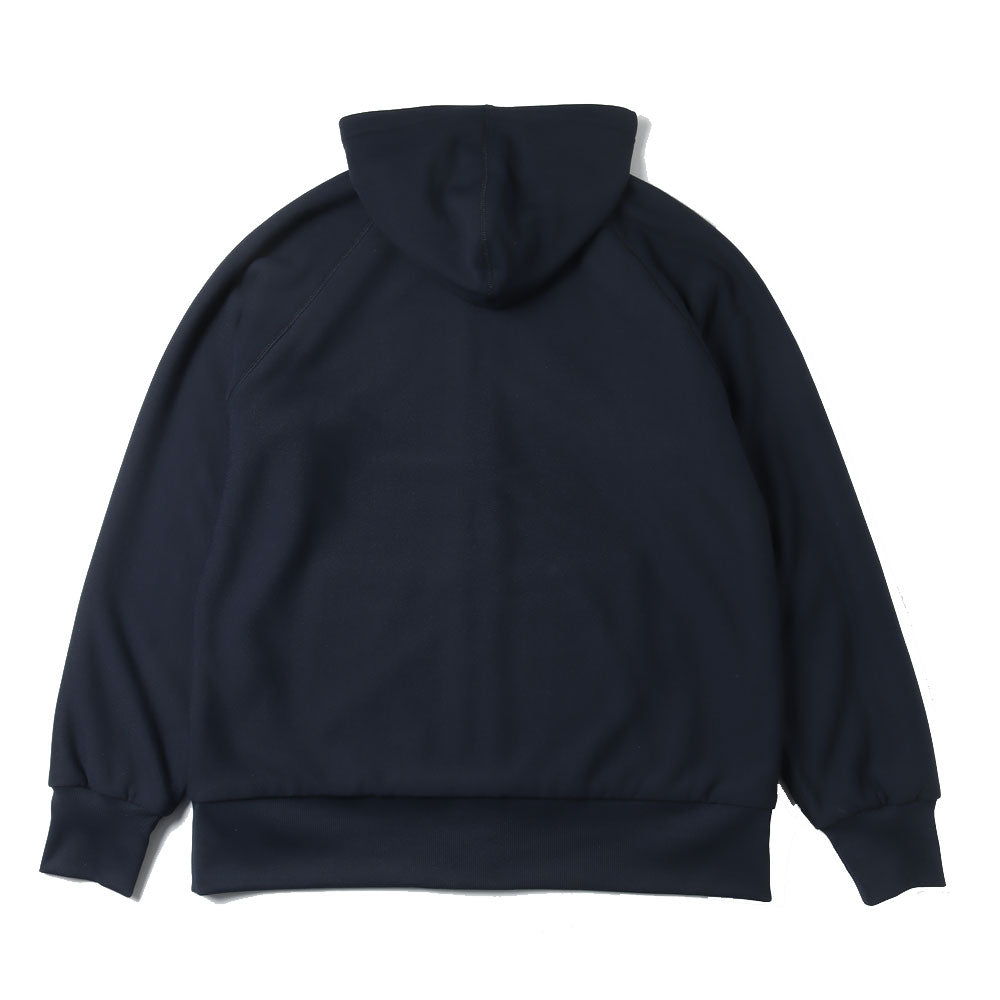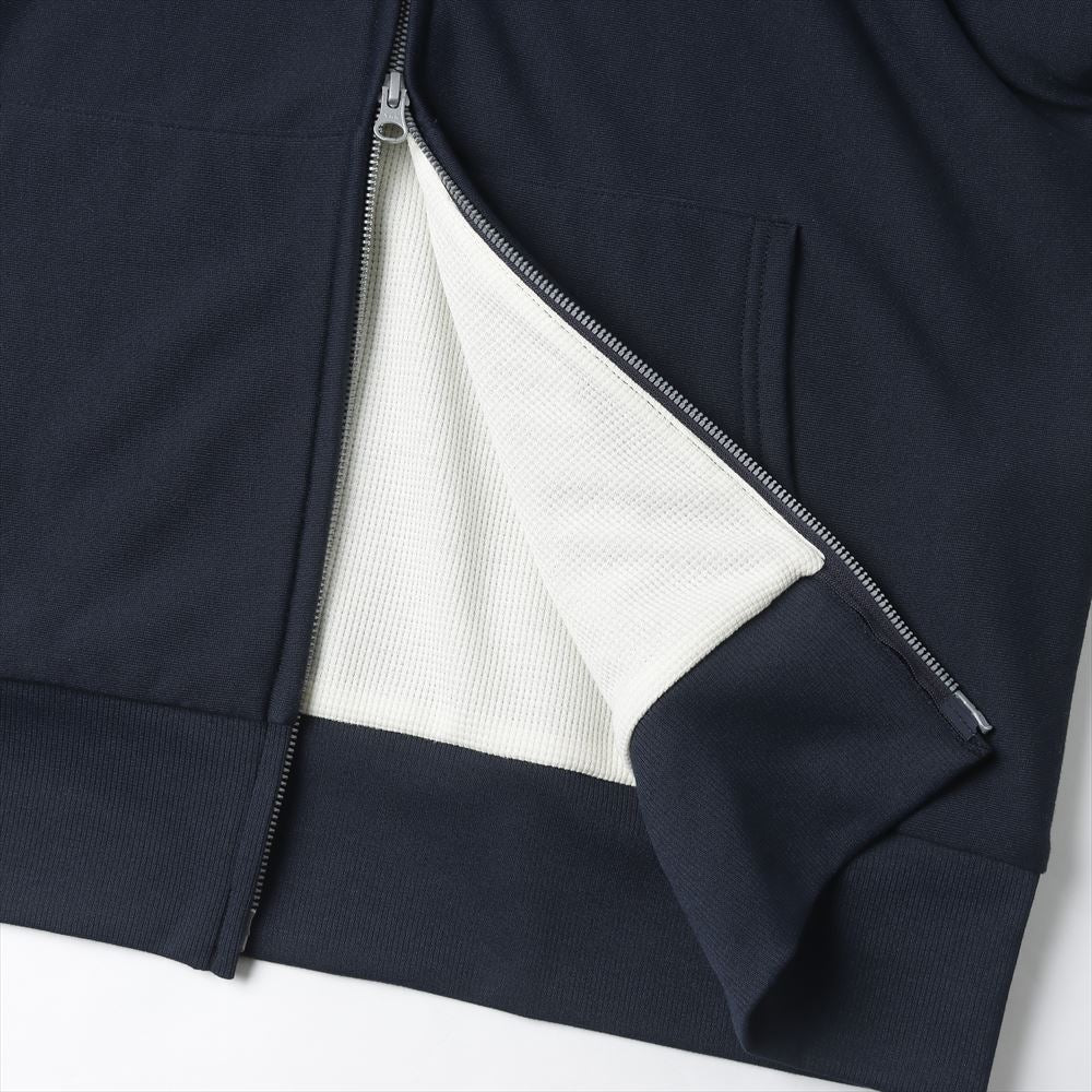 A sweatshirt zip hoodie with a full thermal lining. The outer material (sweatshirt) and the lining (waffle thermal) are both made of polyester (recycled), with quick-drying being the top priority.