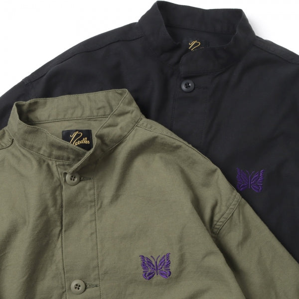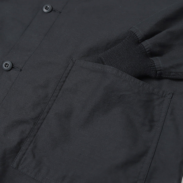 Stand collar, patch pockets, ribbed sleeves, etc.