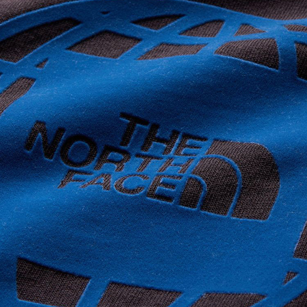 It has a regular silhouette that is easy to mix and match, and features a large flocked print of the geosquare logo, which combines a globe and THE NORTH FACE square logo, on the back.