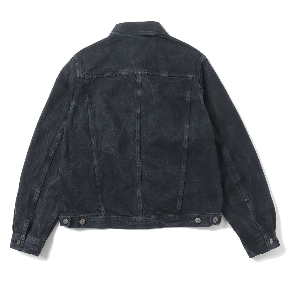 This denim is woven slowly over time on a shuttle loom using short fiber nep yarn for the warp and high-quality Supima cotton for the weft. By deliberately using short fibers for the warp, it has a fluffy, vintage feel, while the weft is made of clean long fibers, giving it a refined fullness and soft texture. The denim is created by repeated processes such as soaping, wrinkling, and bleaching by skilled craftsmen, resulting in a distinctive pattern created by fading.