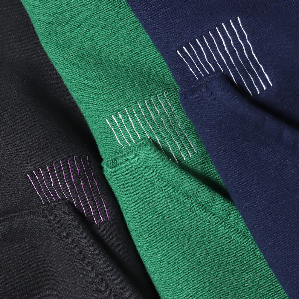 We also paid special attention to the use of fleece yarn, using a loosely twisted yarn for the back loops.