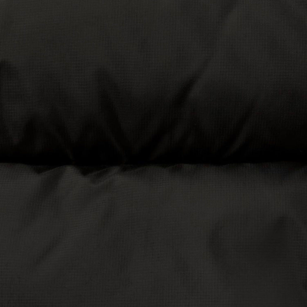Recycled down, which is environmentally friendly, is used in part of the filling. The outer fabric is made of durable 40-denier ripstop nylon with a water-repellent finish, and the shoulder area, which interferes with the pack, is reinforced with nylon material.