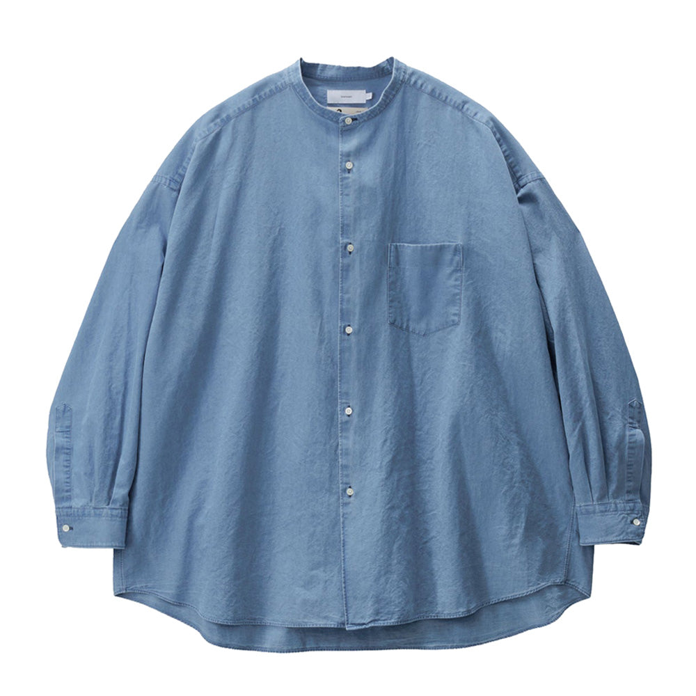 SIDOGRAS Indigo Poplin L/S Oversized Band Collar Shirt