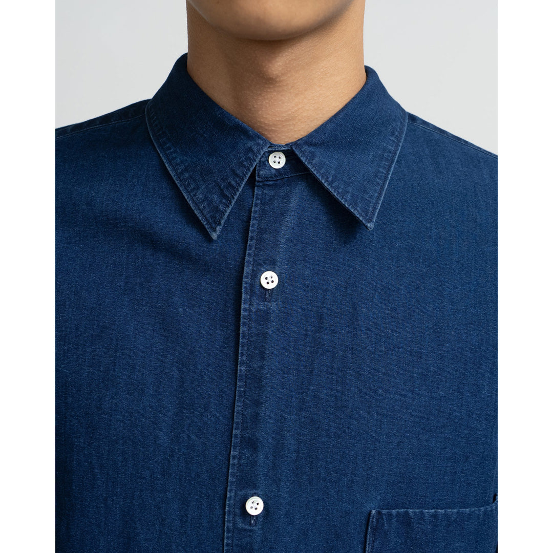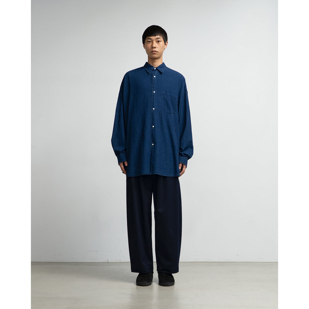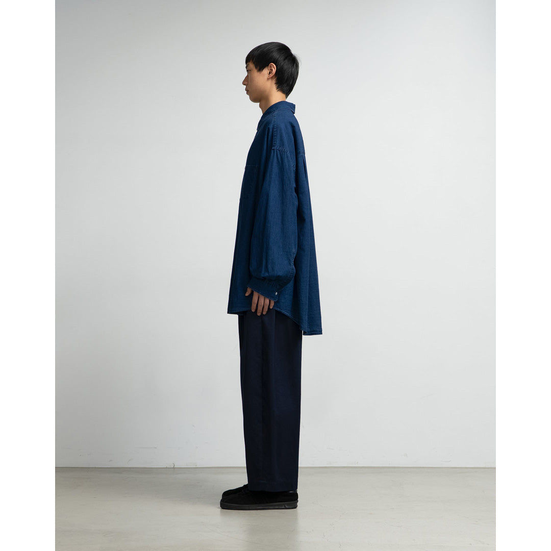 SIDOGRAS Indigo Poplin L/S Oversized Regular Collar Shirt
