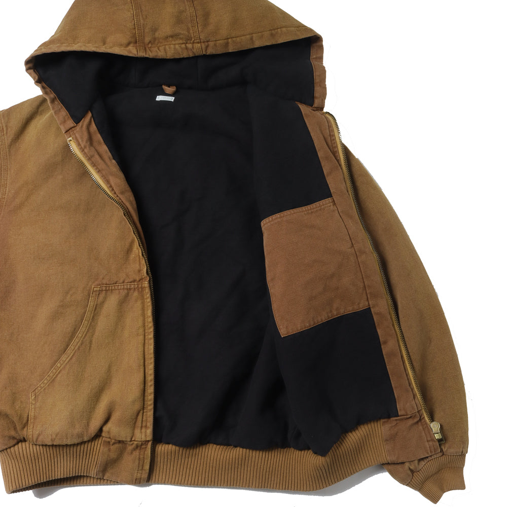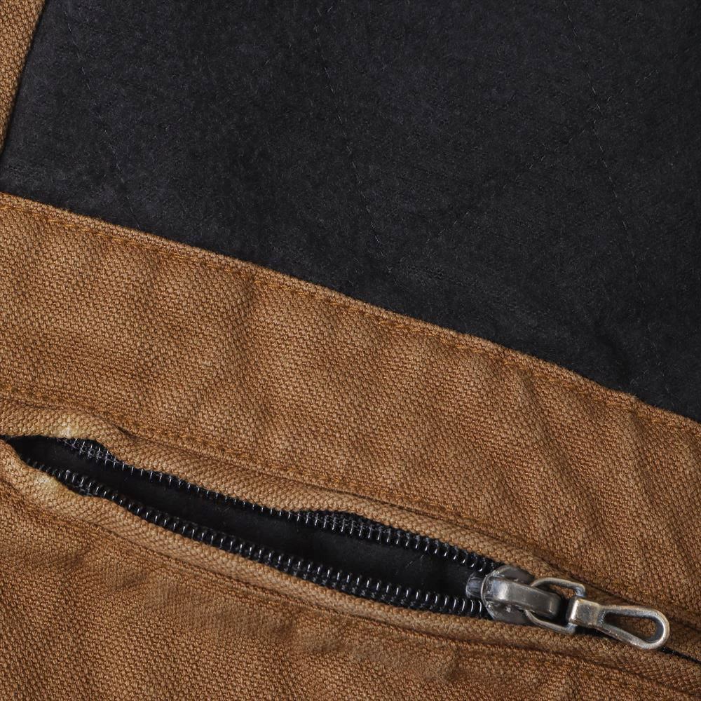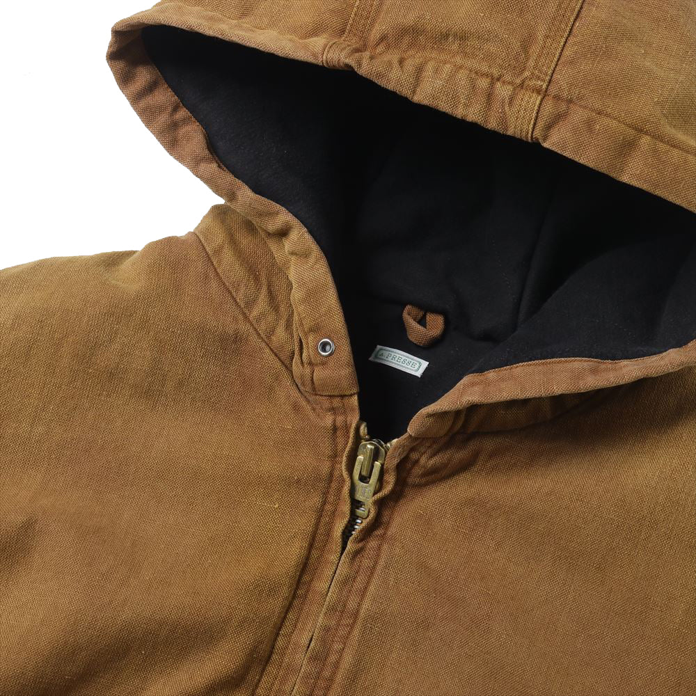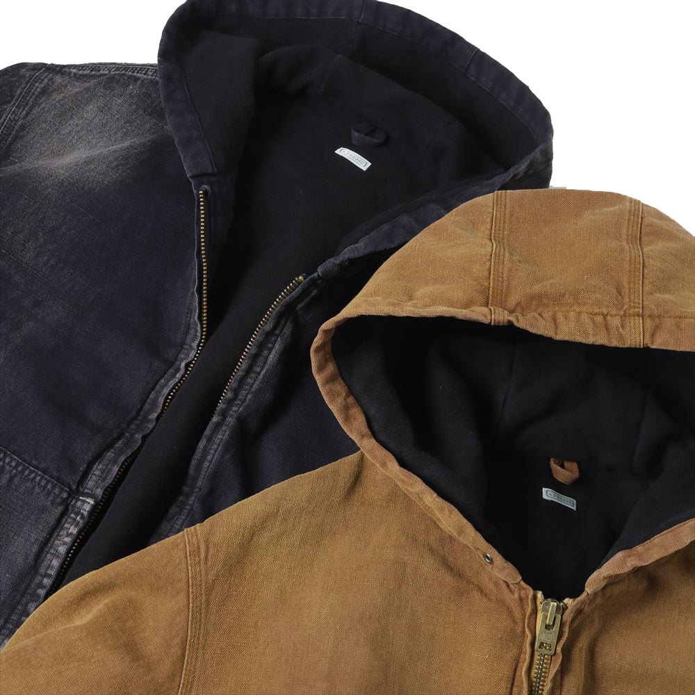 Based on a vintage American work jacket, it has sloping shoulders and a natural shoulder design.