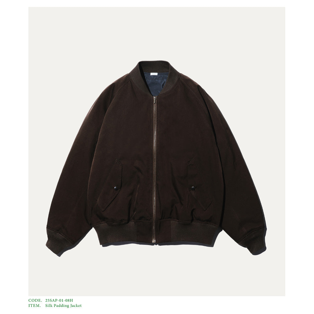 The outer fabric is a super high-density double cloth with silk filament yarn used for the warp and fine cotton used for the weft. The vintage finish makes the silk fibrillate on the surface and reduces the luster, giving it a smooth and wonderful texture while still retaining a moderate amount of stiffness.