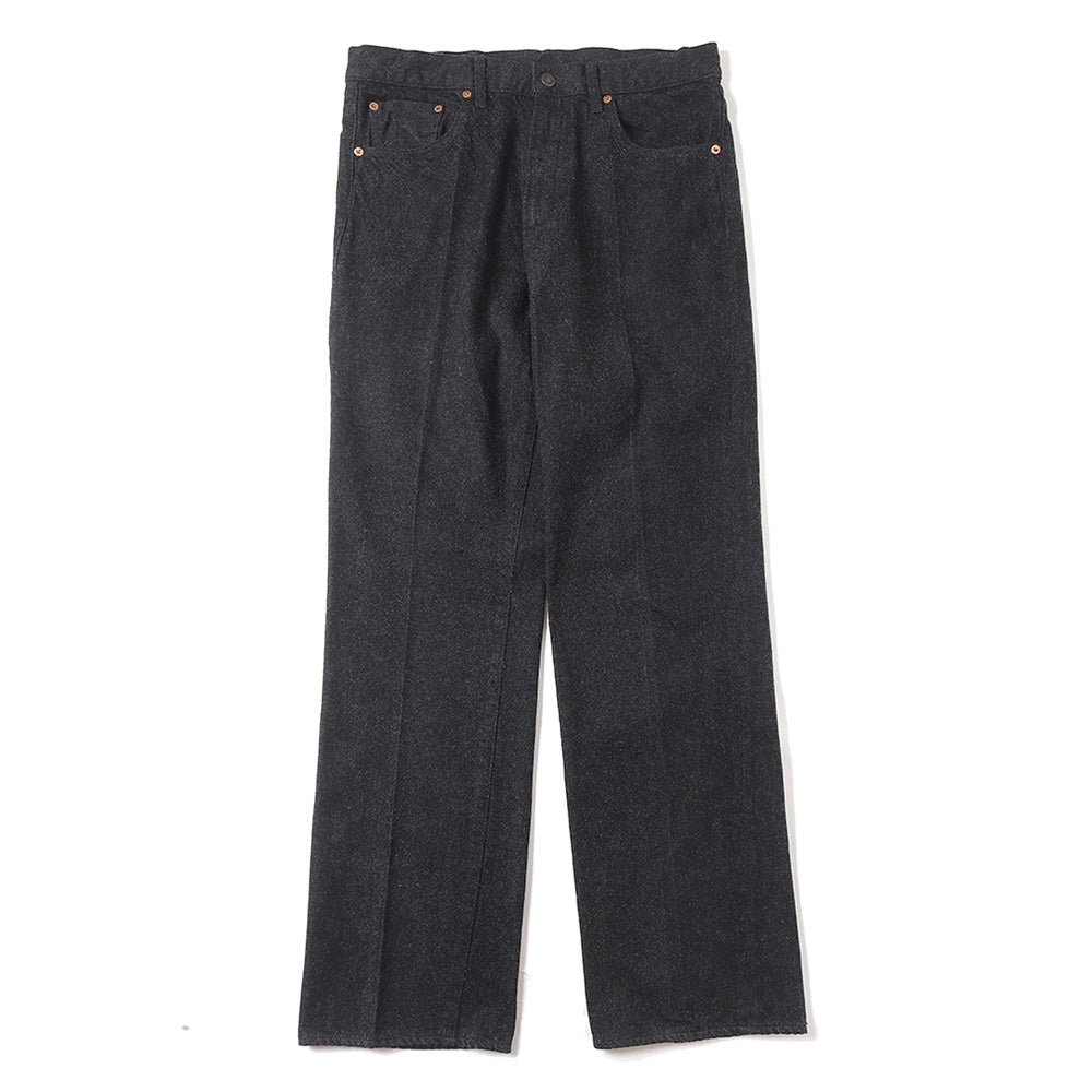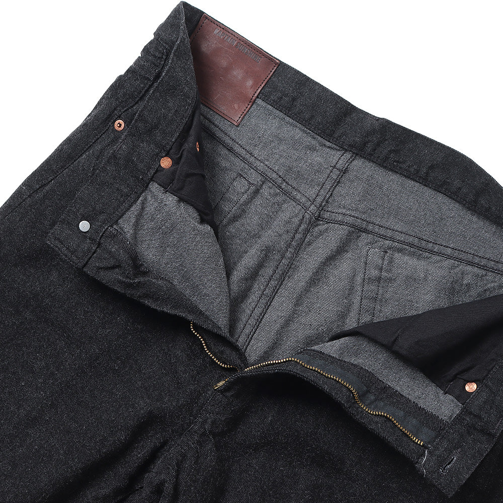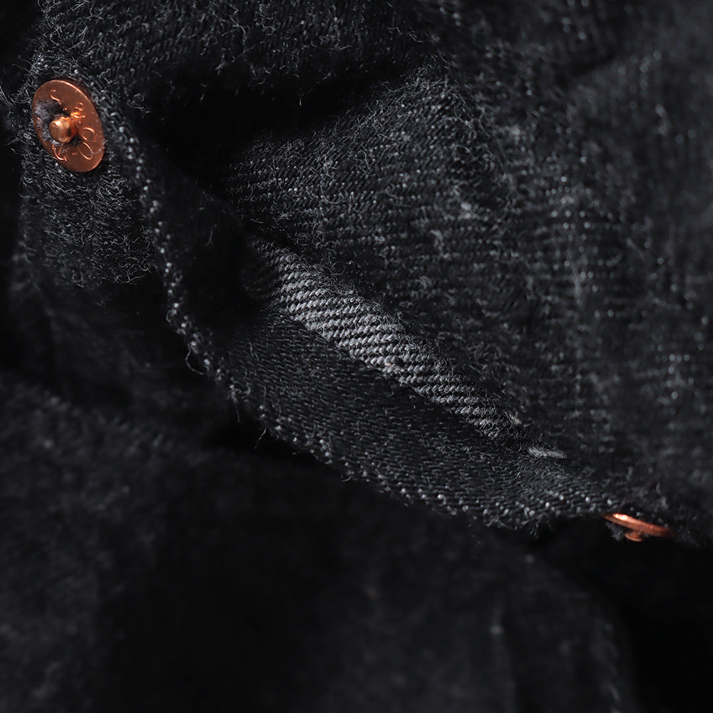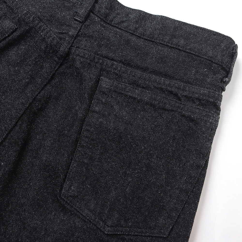 This 13.5oz selvedge denim is made from high-quality San Joaquin cotton, a long-established cotton producing region in the United States, and is dyed black using a special spinning method that mixes in natural neps to create a look that is reminiscent of the 1980s.