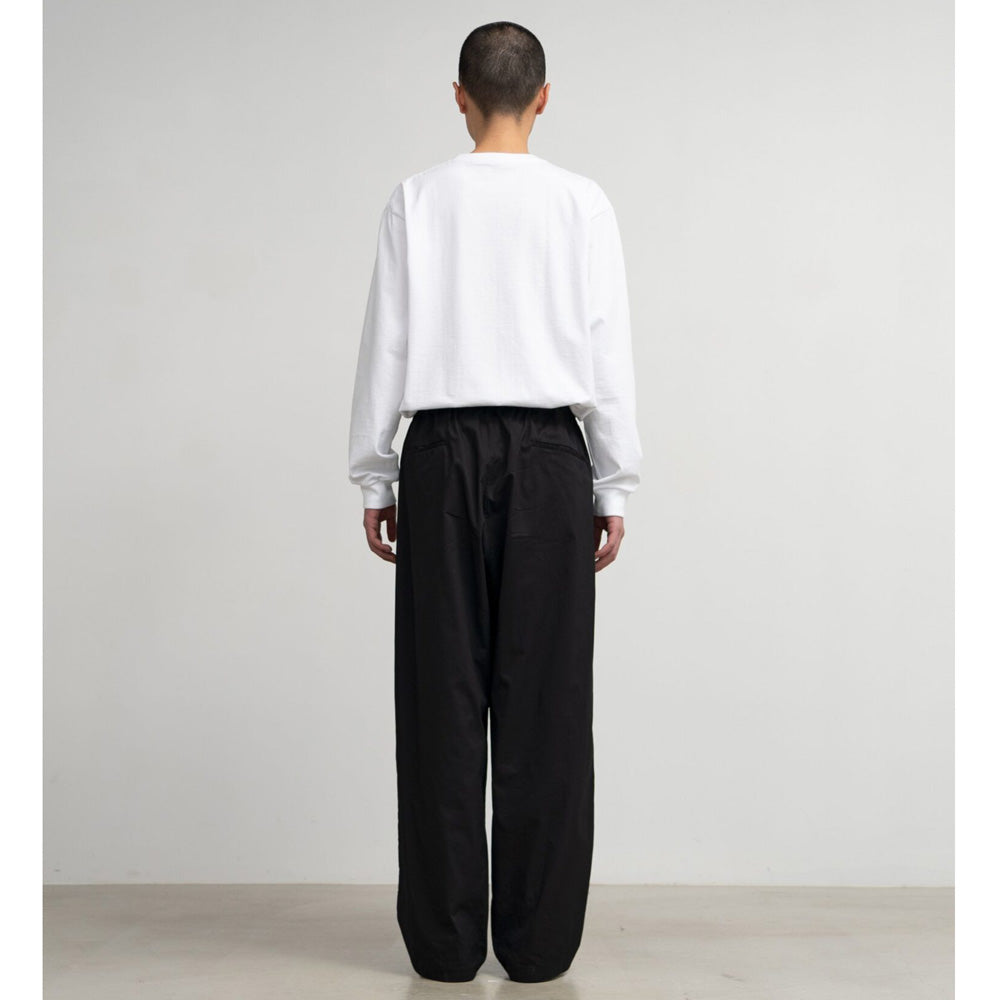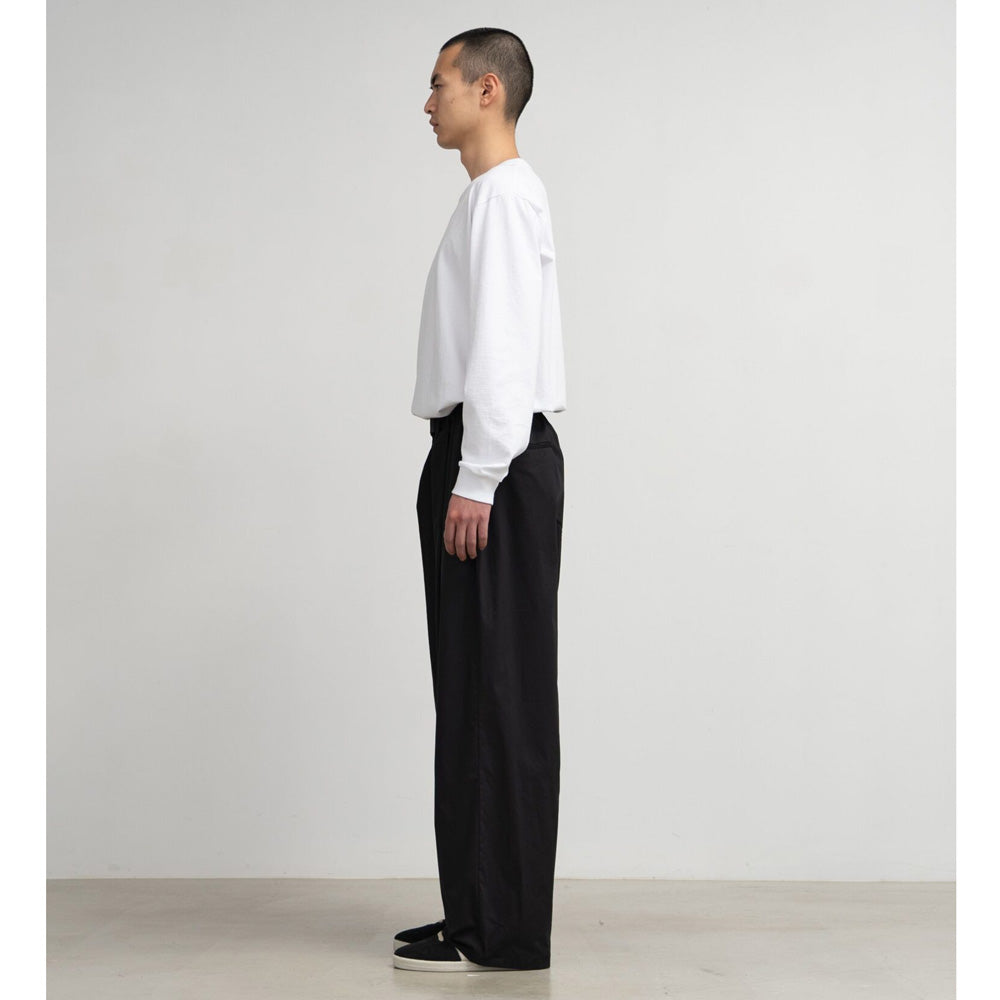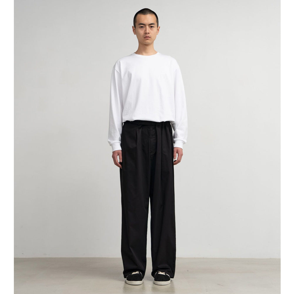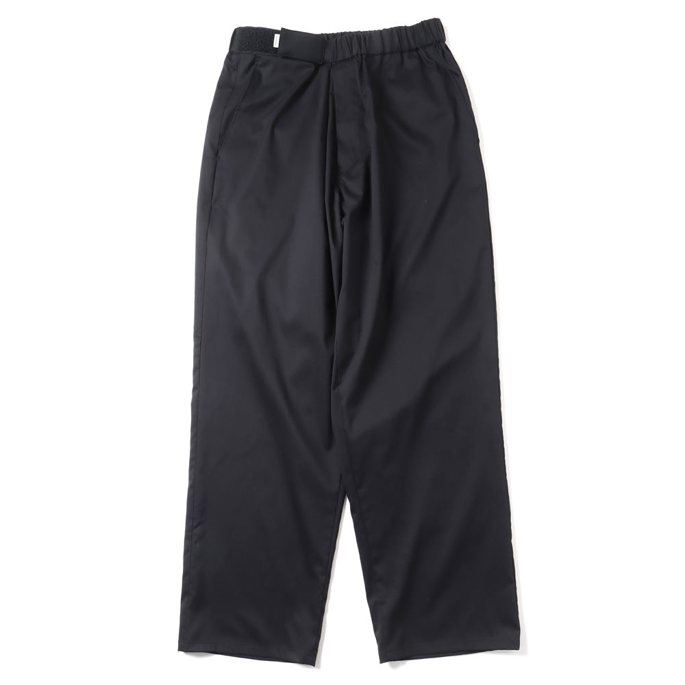 Solotex's twill material has high shape recovery, light stretchability, and overwhelming lightness. Graphpaper's classic chef pants can be easily adjusted to fit the waist size and silhouette. Wide tapered silhouette with wide hem.