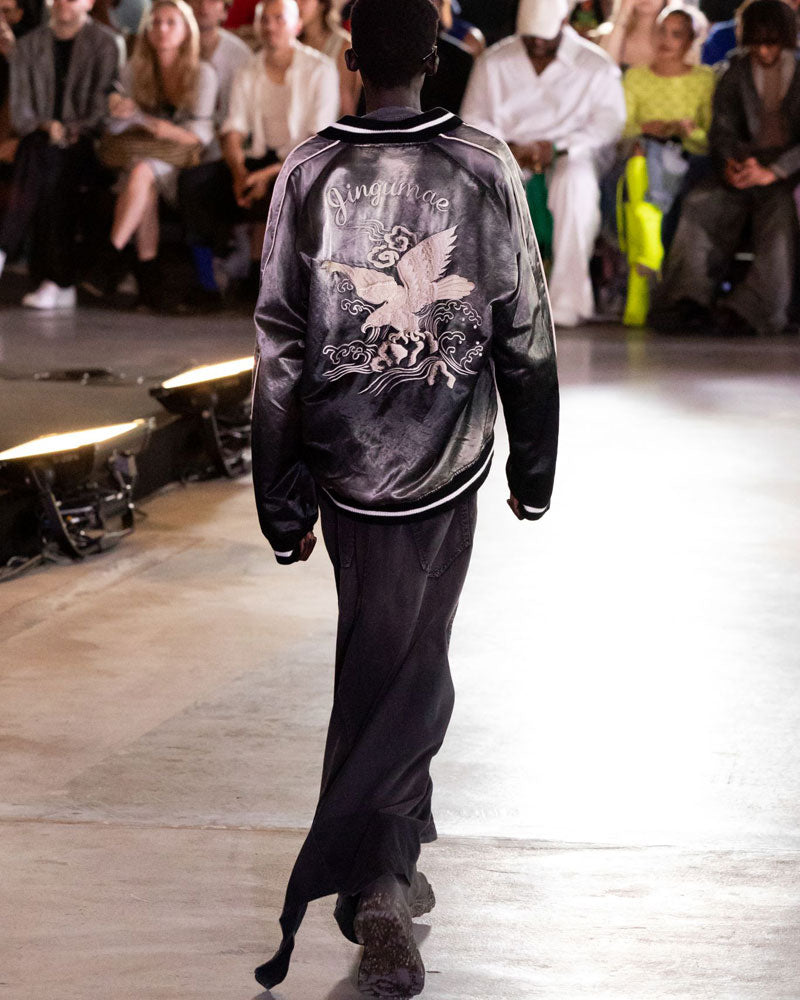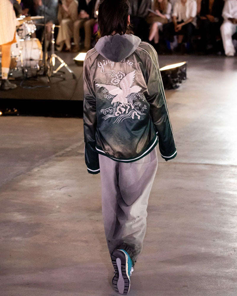 This Sukajan jacket has a unique vintage finish that gives it a distinctive look.