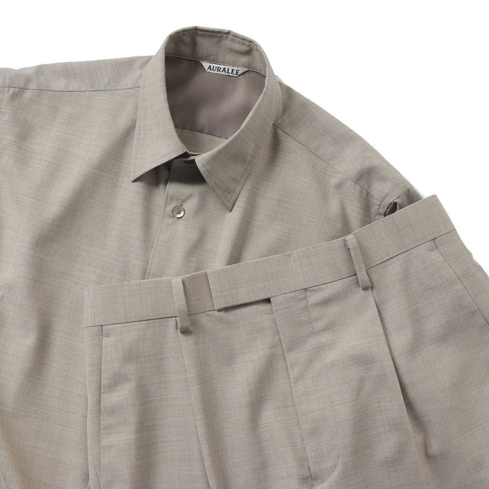This wool tropical fabric is made using only heathered yarn made from Super130's combed wool.