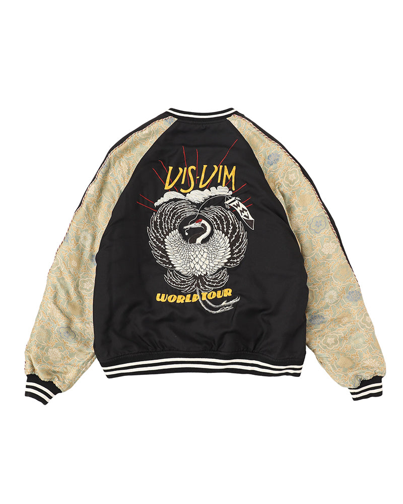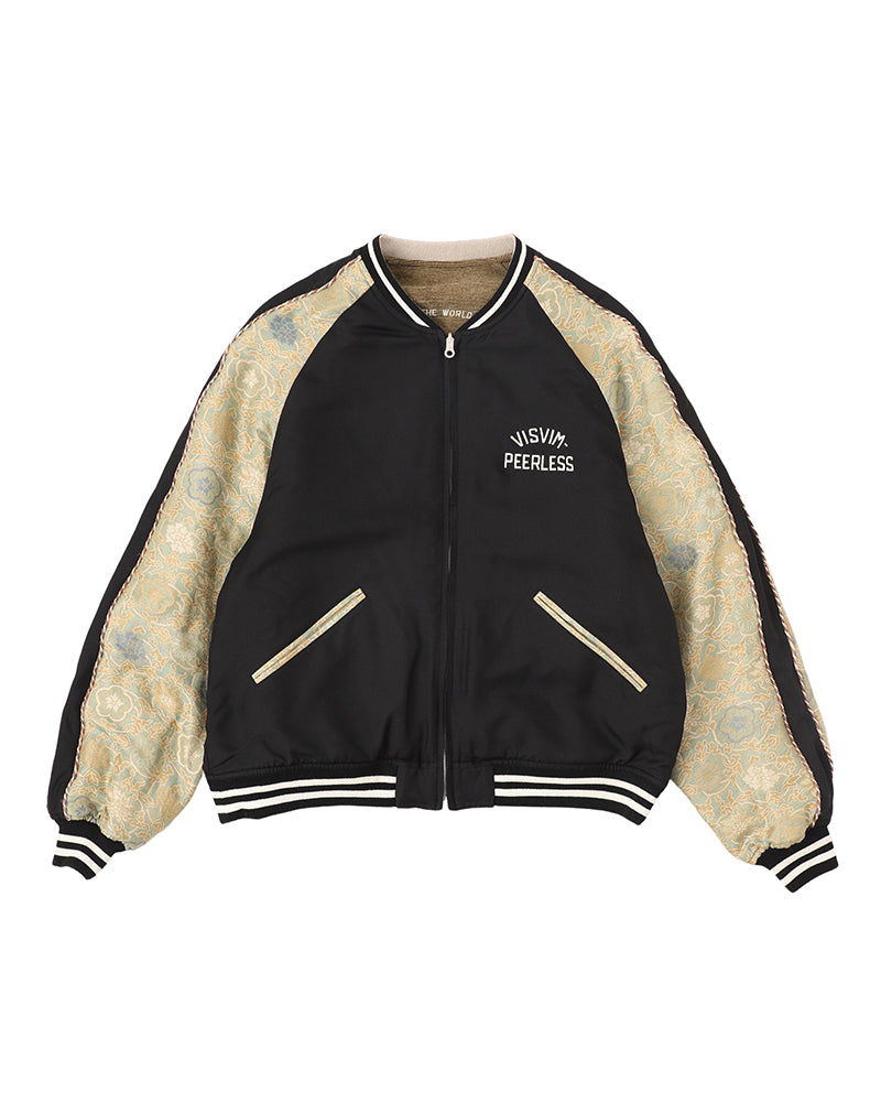 Silk twill jacket Pressed finish Stuffing made from pure cotton Swiss Riri zipper Reversible design Front left chest "VISVIM・PEERLESS" machine embroidered detail Front back "VISVIM WORLD TOUR" machine embroidered detail Back "Dragon" machine embroidered detail on both chests Back back "PEERLESS・VISVIM・Earth" machine embroidered detail