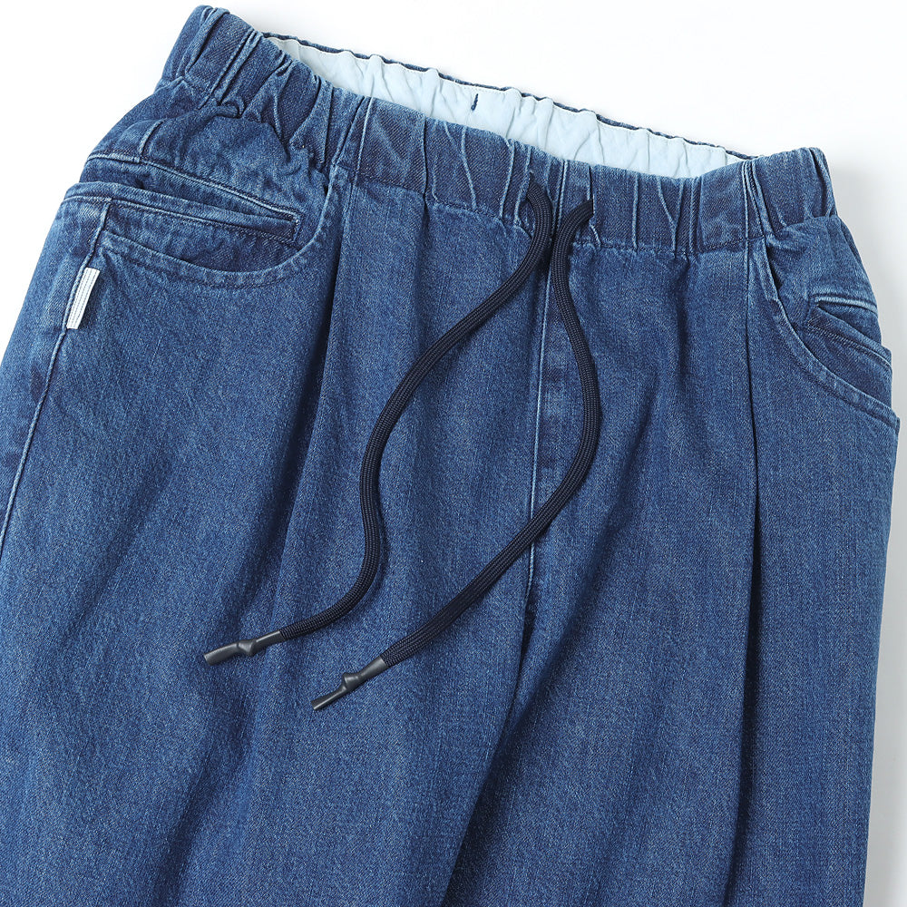 Made from air-spun yarn blended with high-quality American cotton, this fabric is rope dyed with pure indigo for a natural color fading effect.