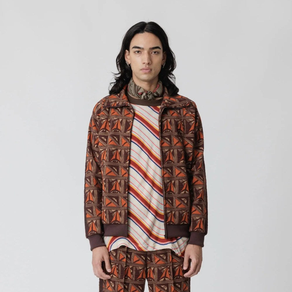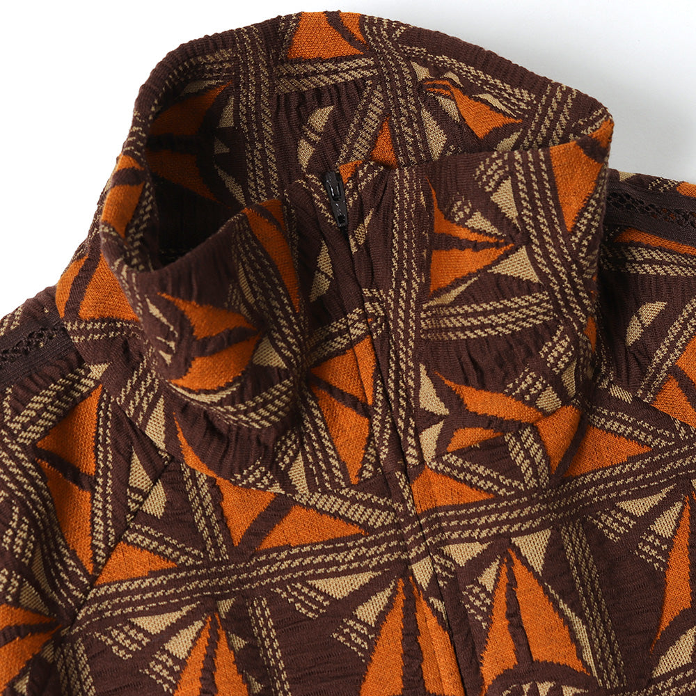 There is lace tape embroidery on both sleeves and lion embroidery on the chest.