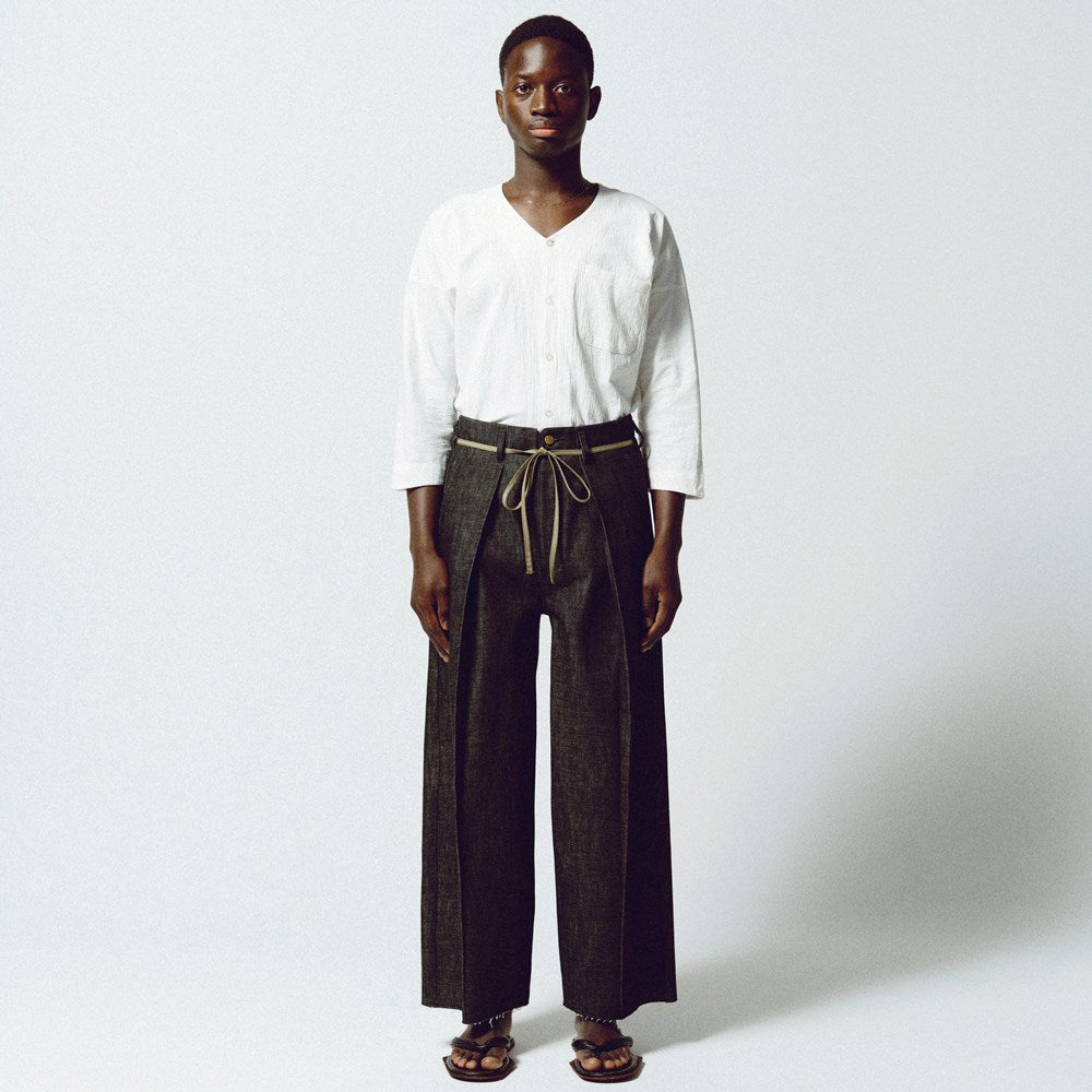 The TUCK-BAGGY style has a silhouette reminiscent of a hakama.