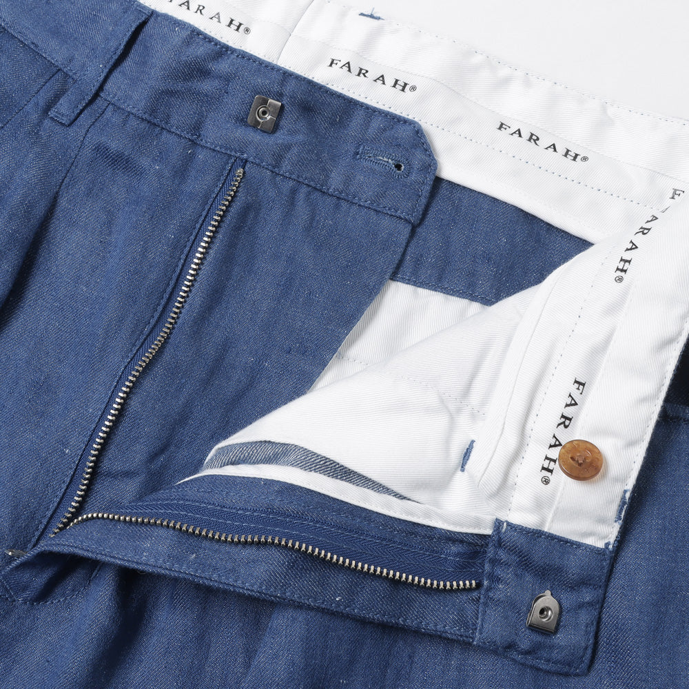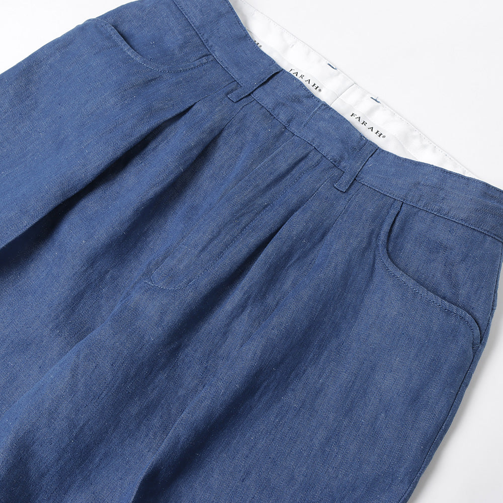 Two-tuck Wide Tapered Pants (Linen Denim)