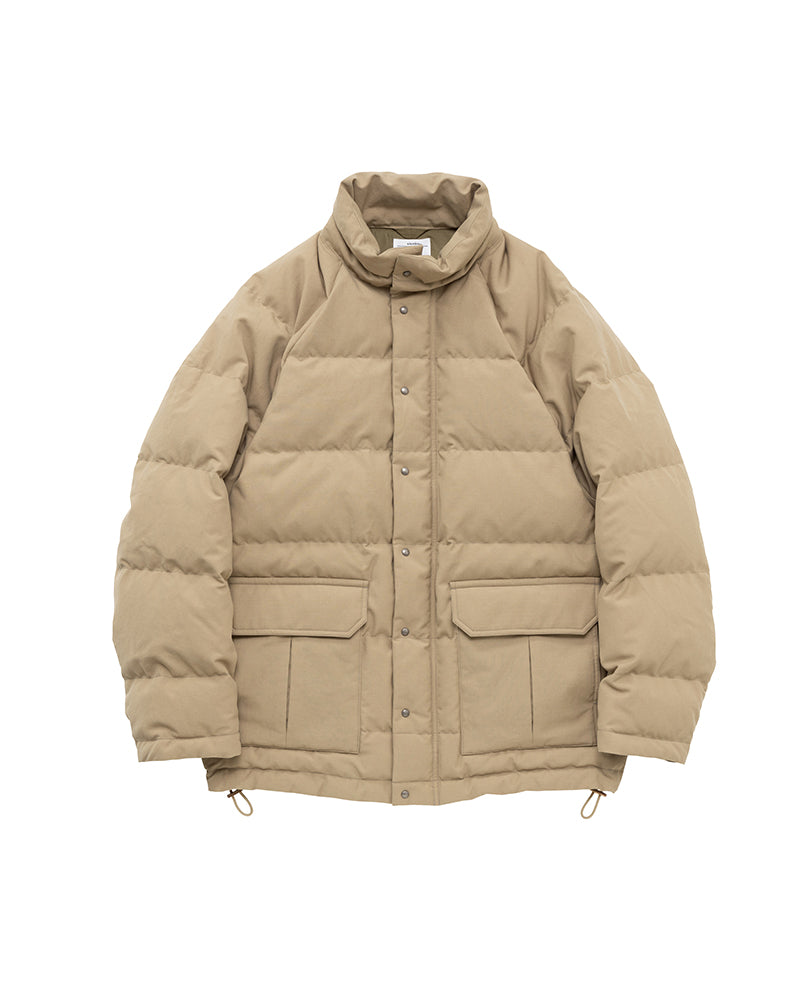 Down jacket made of tropical fabric woven with wool and linen Pressed finish Filled with white goose down Swiss riri original slider Original snap button
