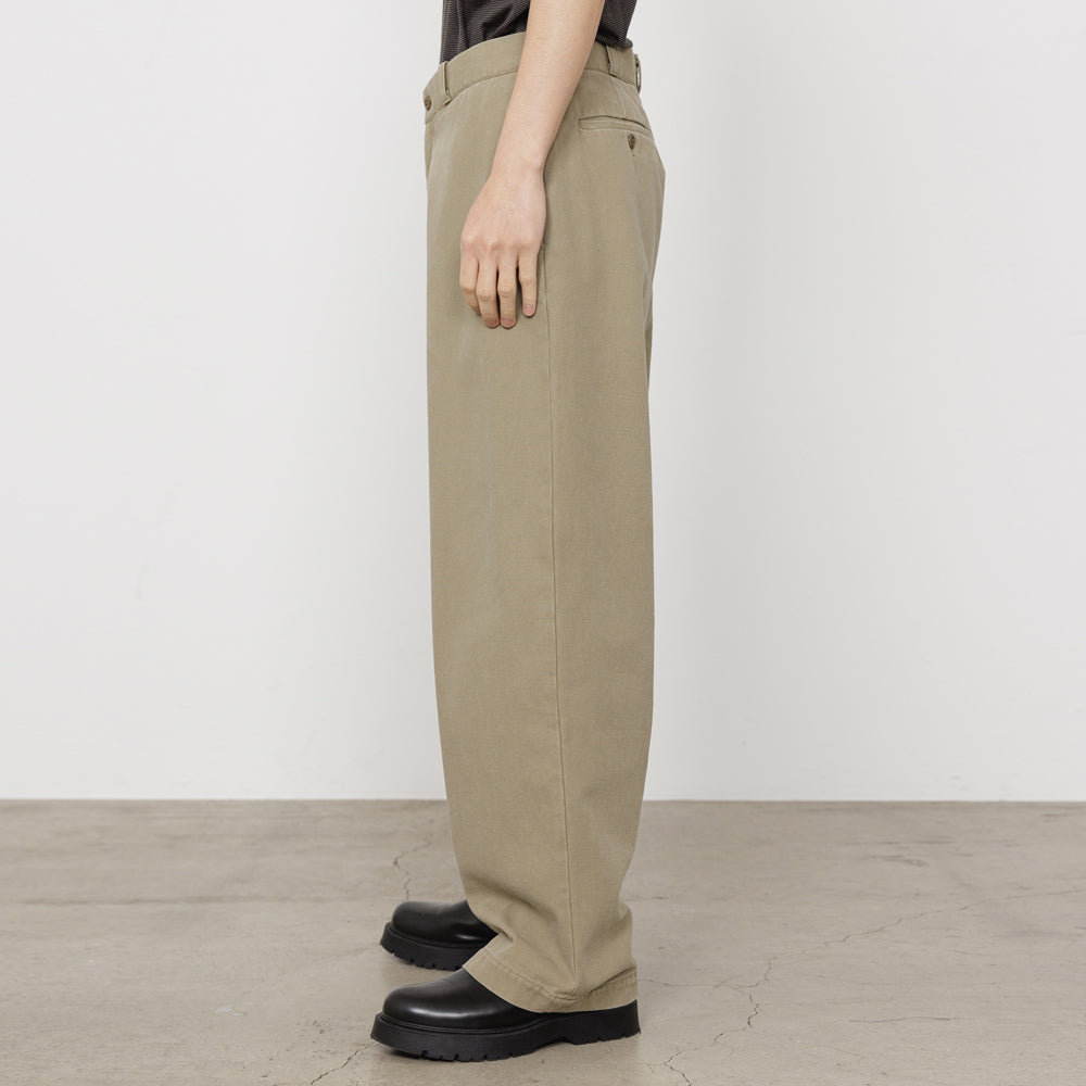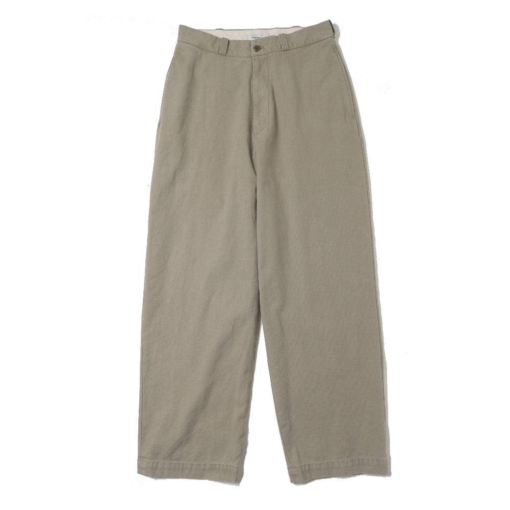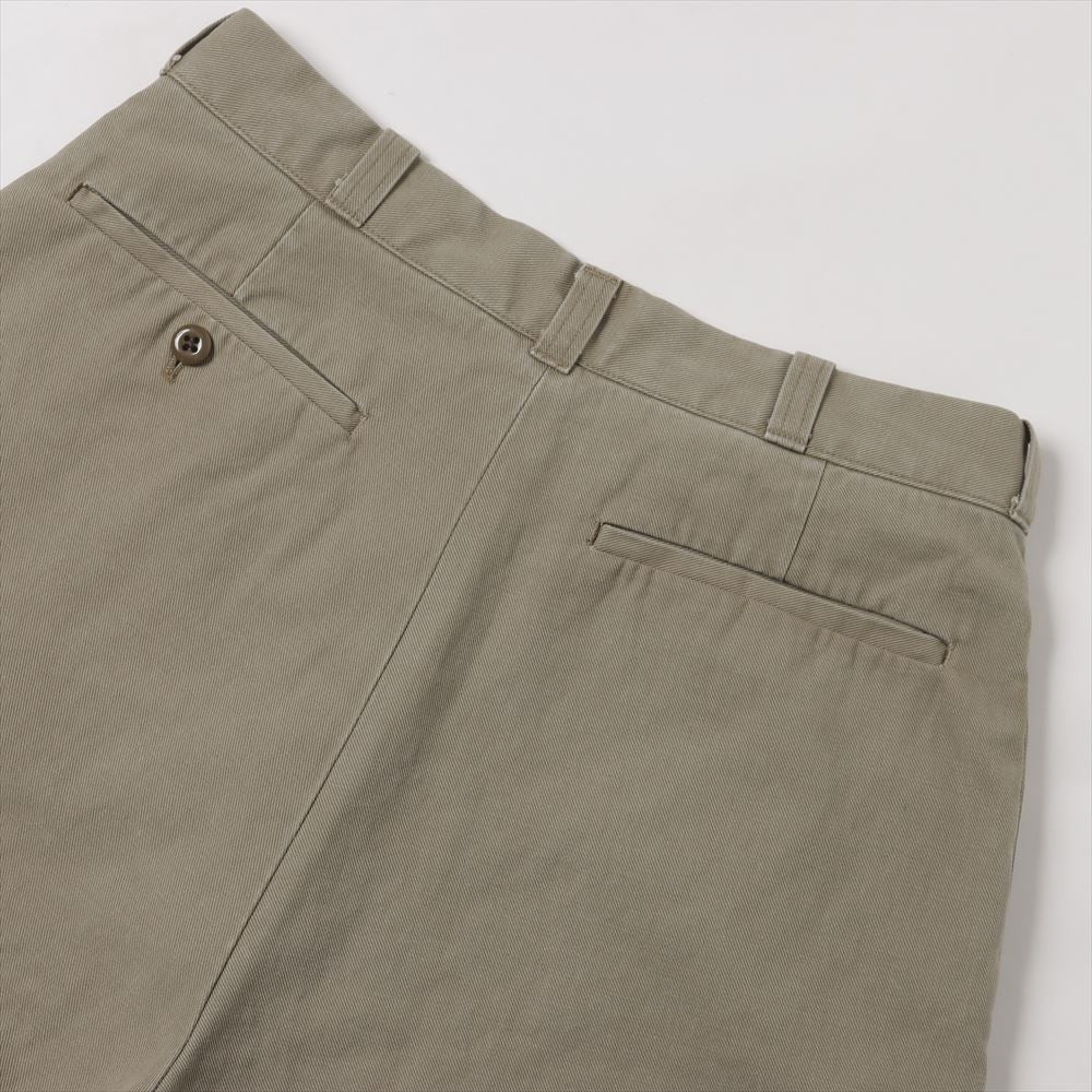 These are U.S.ARMY CHINO TROUSERS, a reproduction of the trousers used by the U.S. Army in the 1960s. These pants are popular and well-known as the king of vintage wear, but we have adjusted the silhouette balance to suit the current mood and finished them in a medium-thick straight cut. These chino trousers have a wide range of uses and can be easily matched with any outfit. The wide silhouette is not too thick, so they can be matched with a variety of shoes such as sneakers and leather shoes. The appeal of these pants is that they have a vintage feel and a certain elegance to them.
