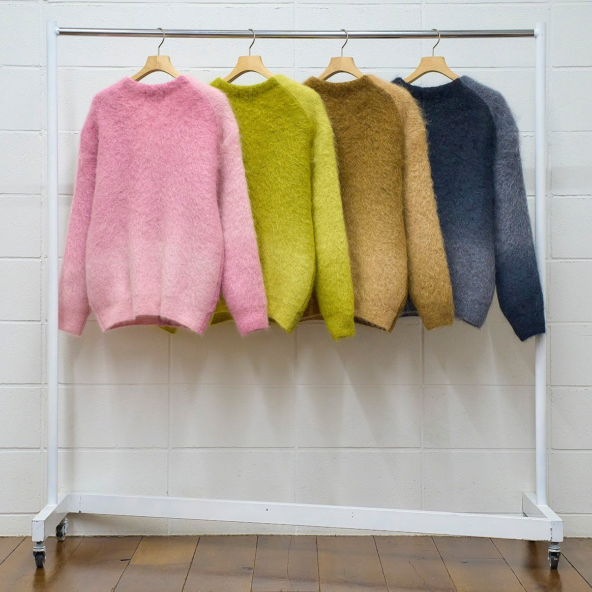 Each knitted piece is dyed with a gradient dye and then shaped into shape.